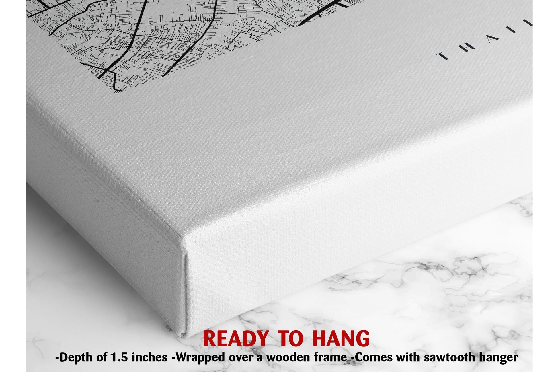 This city map print serves as elegant Thailand wall art and urban street map decor, ideal for home or office settings. The minimalist city map style enhances any room without overwhelming existing decor. Our rolled canvas art option offers flexibility for custom framing, while the ready to hang print provides convenience without sacrificing quality.