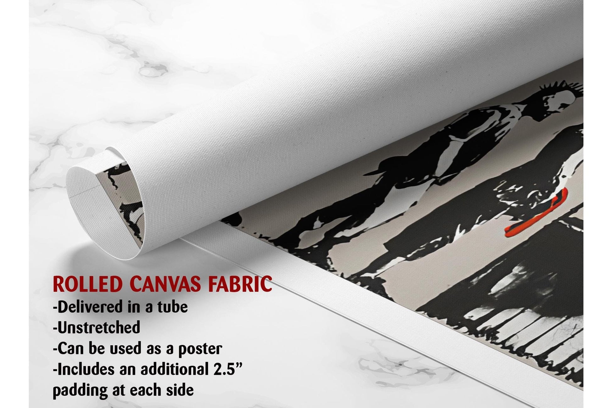 This Banksy canvas print captures the raw energy of urban street art, making it an ideal focal point for living rooms, offices, or creative spaces. The graffiti style print adds a contemporary edge while the artist grade canvas provides a textured surface that enhances every detail. Whether you prefer the convenience of ready to hang canvas wall decor or the DIY approach with rolled canvas print, this product offers both style and function.