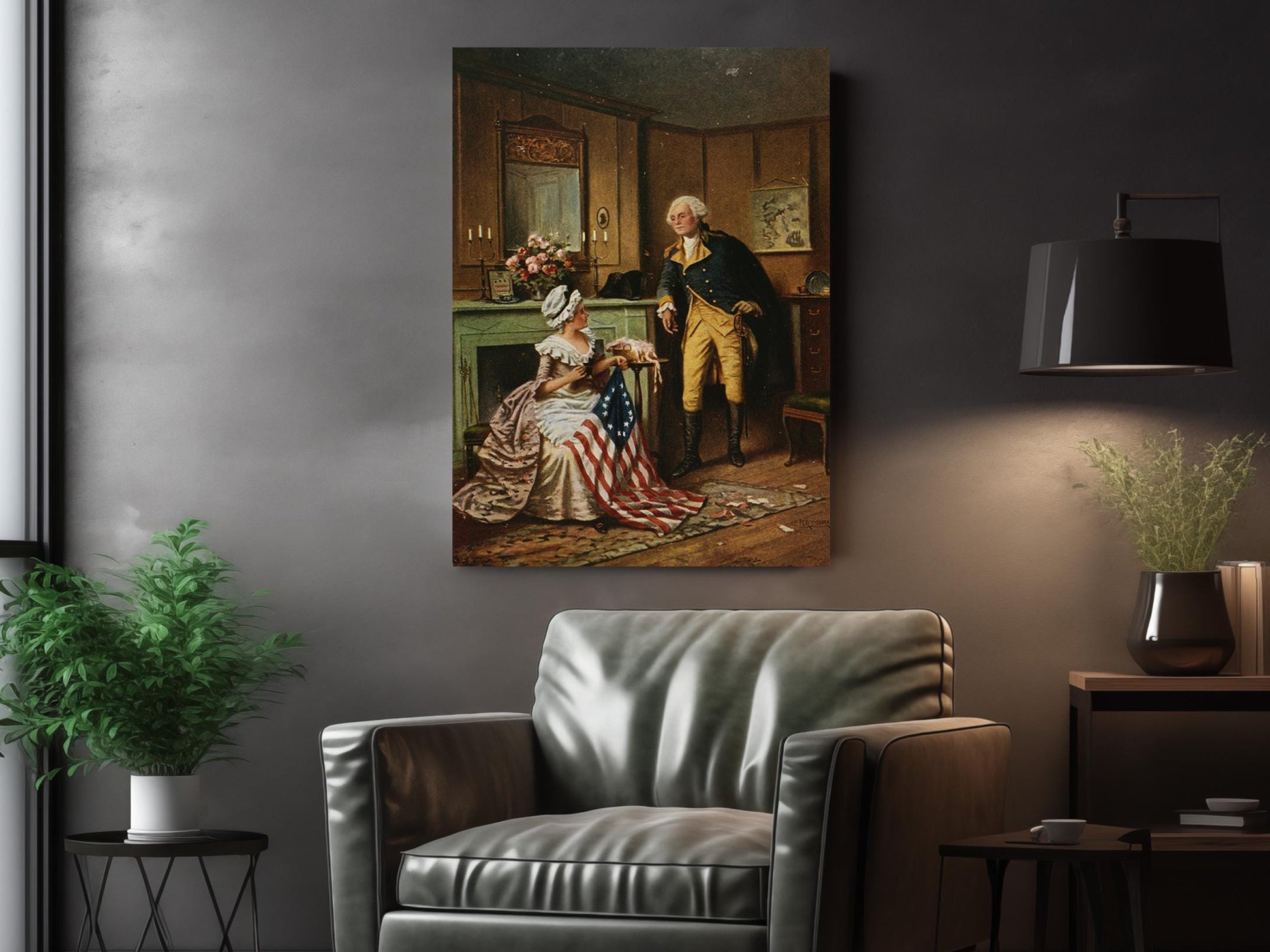 - Authentic Betsy Ross artwork and George Washington painting by E. Percy Moran → perfect colonial era decor for American revolution art lovers