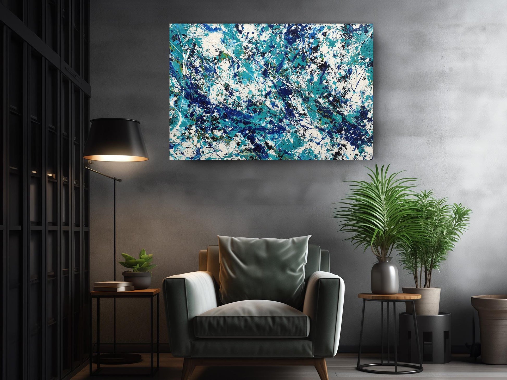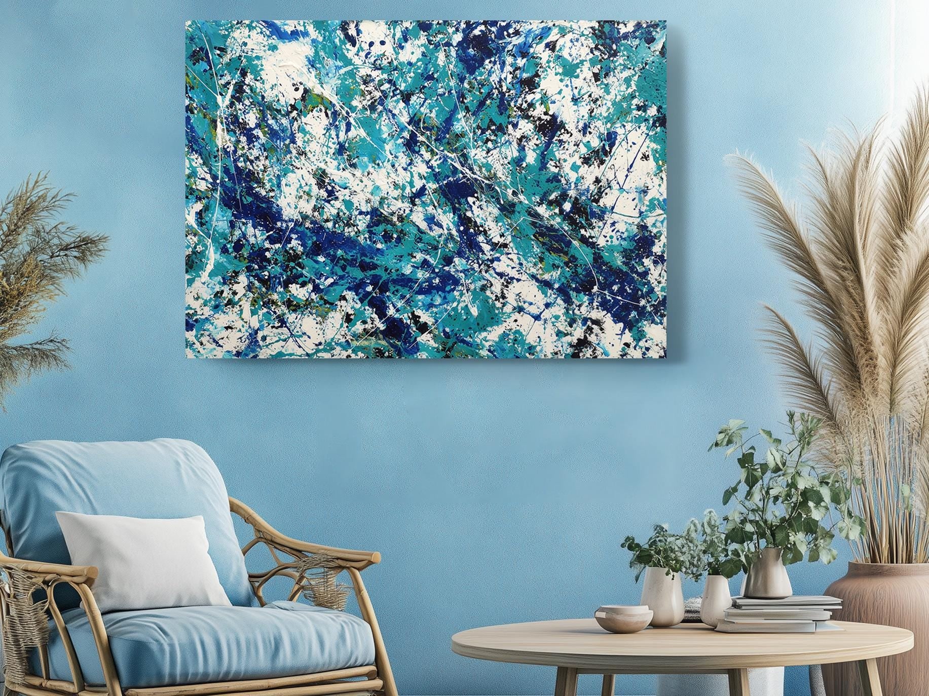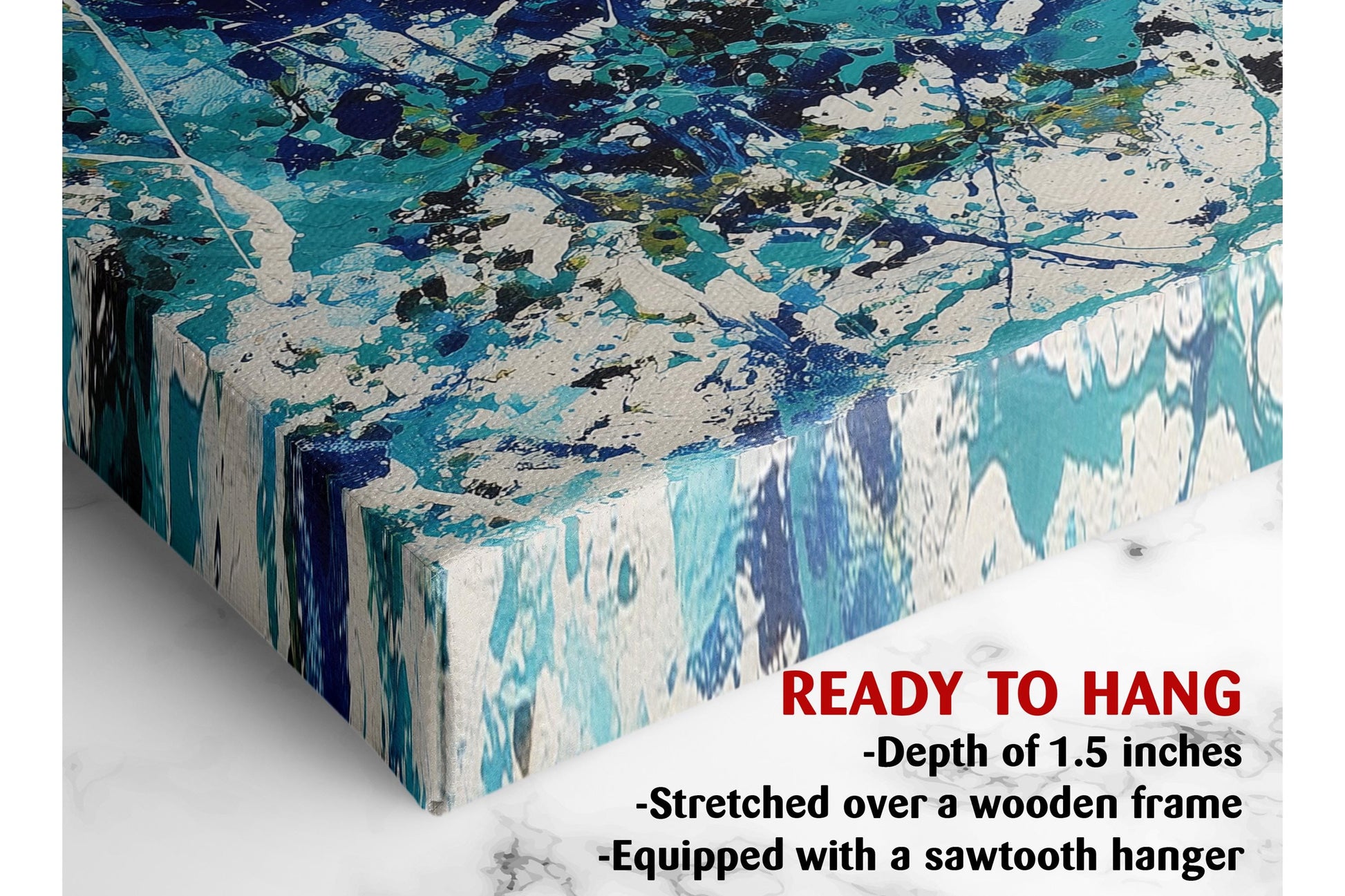 Elite Canvas combines cutting-edge printing technology with premium materials to deliver modern wall prints that elevate any space. The gallery style canvas techniques create sharp, crisp corners and a lightweight yet durable finish that makes hanging simple and secure. Whether you select the convenience of framed canvas art or the versatility of rolled canvas print, this large blue wall art complements contemporary interiors with its striking abstract design.
