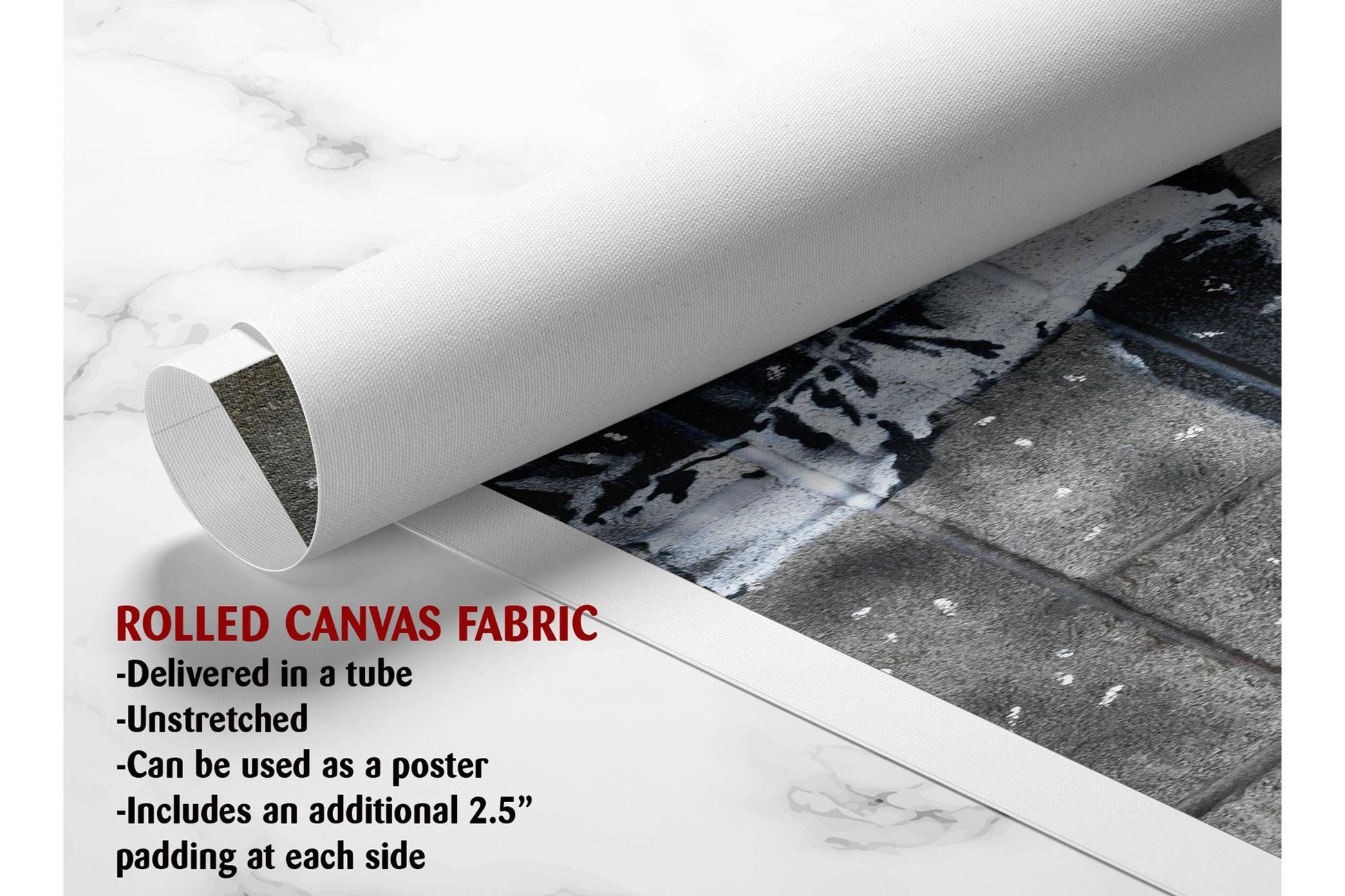 - Rolled canvas print: shipped rolled in a protective tube with a free 2.5" border, allowing you to stretch and frame according to your taste.