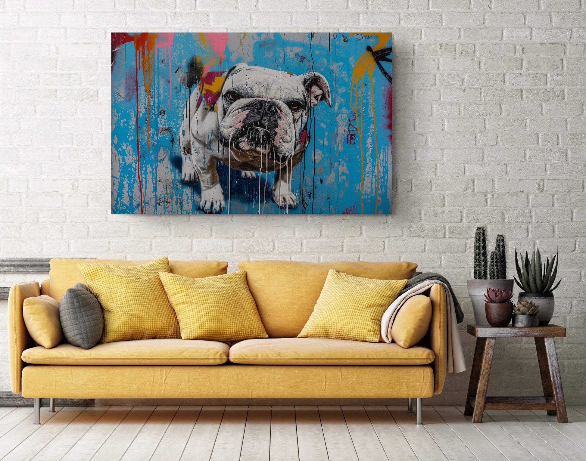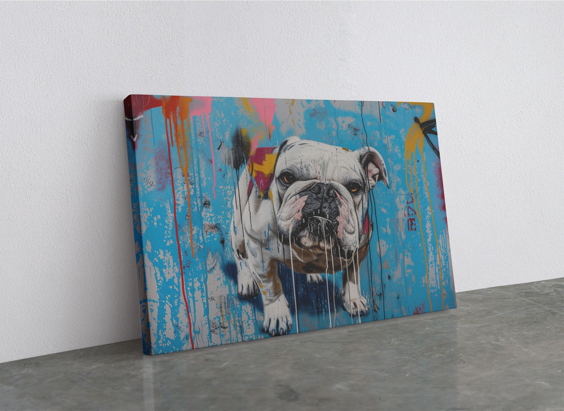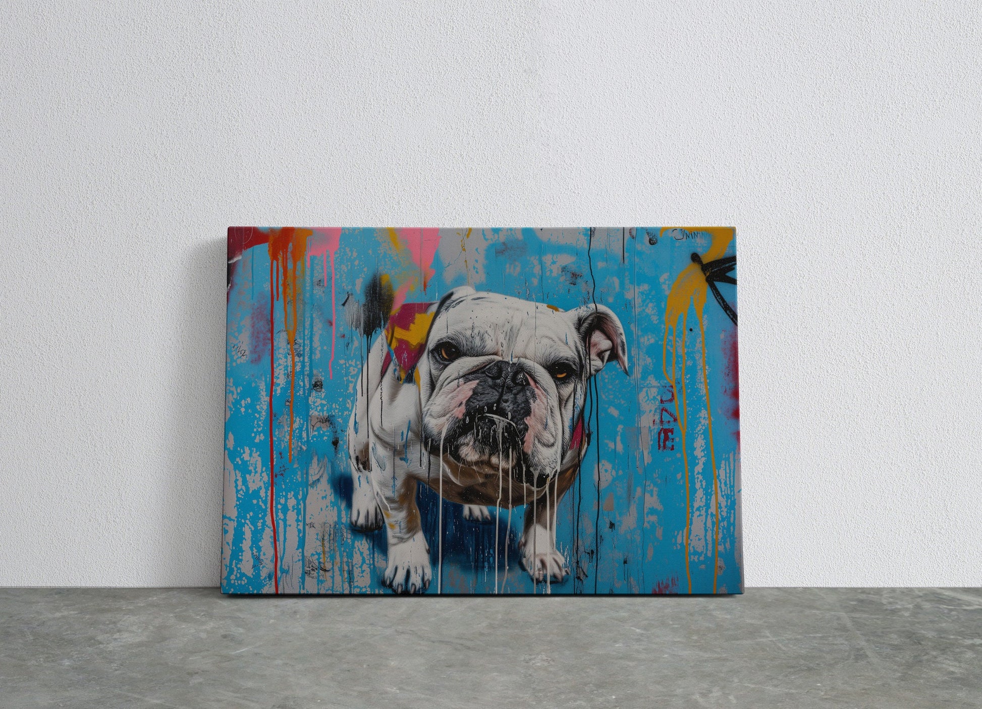 This Bulldog Canvas Print is a striking piece of motivational dog wall art designed to bring urban energy and inspiration to your space. Crafted with artist-grade canvas and pigment-based inks, this graffiti art print delivers vibrant colors and sharp details that last. Whether you choose the rolled canvas print for custom framing or the ready to hang canvas option, this pet canvas artwork offers fade resistant print quality and scratch resistant canvas durability, ensuring your dog art decor remains stunning over time.