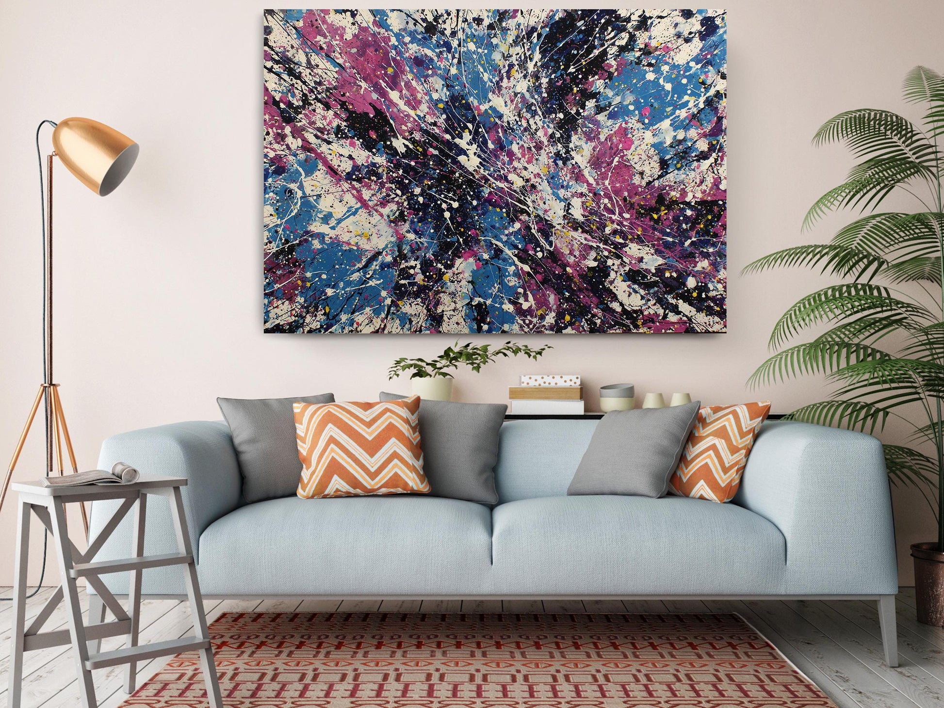 Our Abstract Canvas Wall Art offers a stunning cosmic Pollock style splatter painting that transforms any space with vibrant modern abstract decor. This framed canvas print delivers museum quality prints on artist grade canvas, ensuring your abstract wall decor stands out with vivid colors and lasting beauty. Designed for art lovers seeking unique splatter paint artwork, this ready to hang art piece combines creative expression with durable craftsmanship.