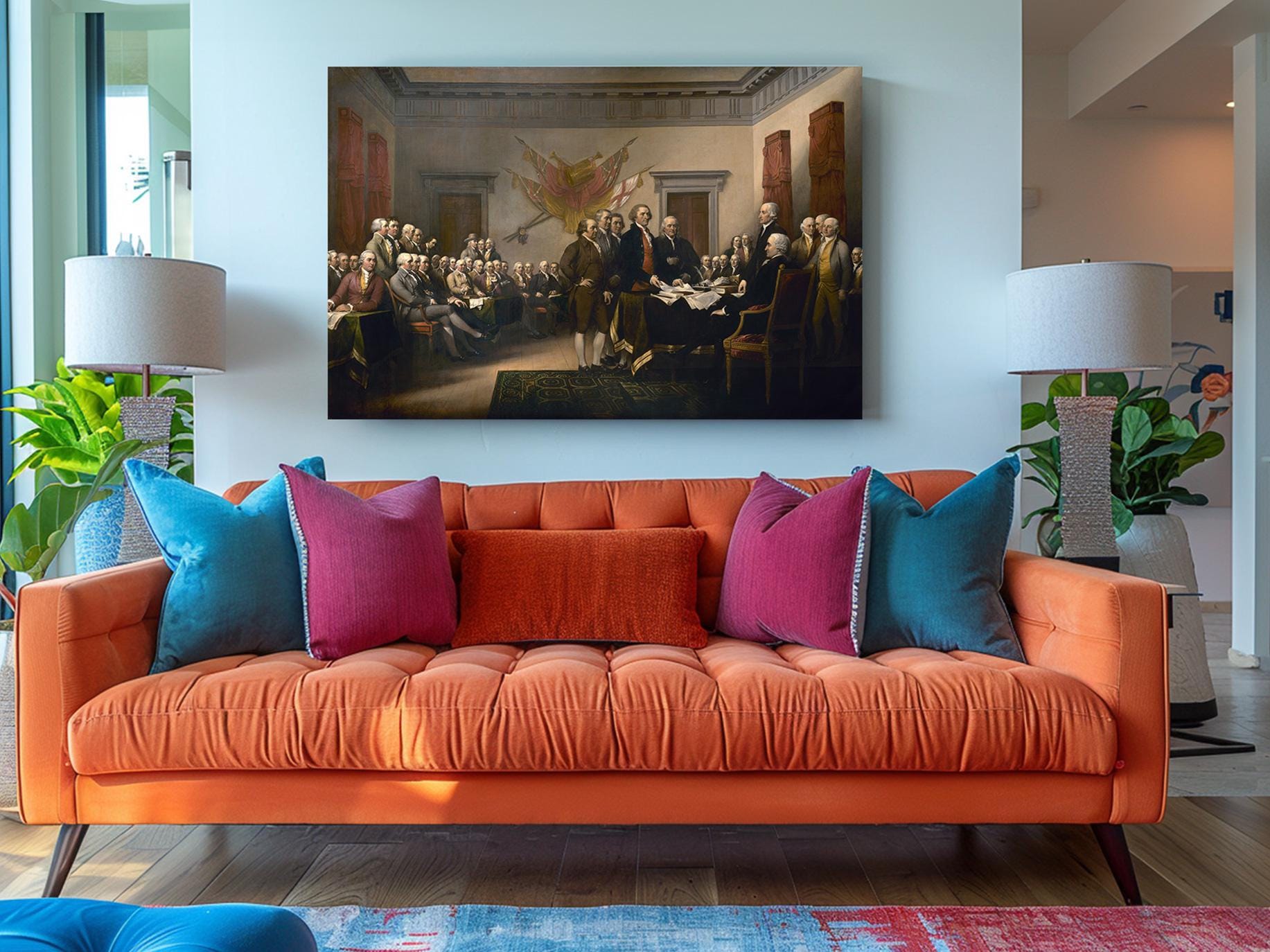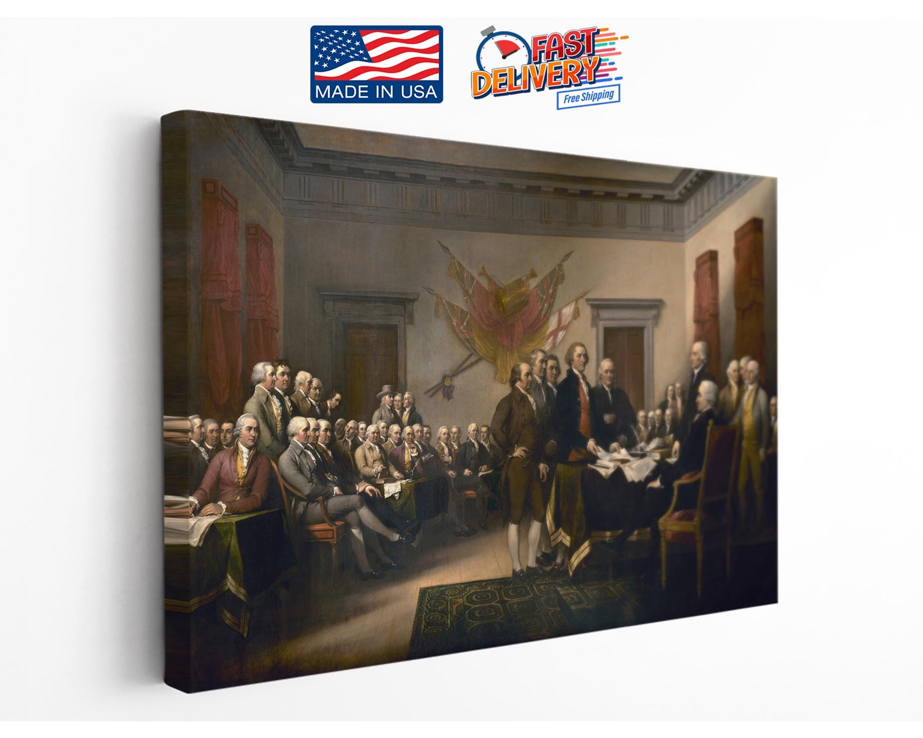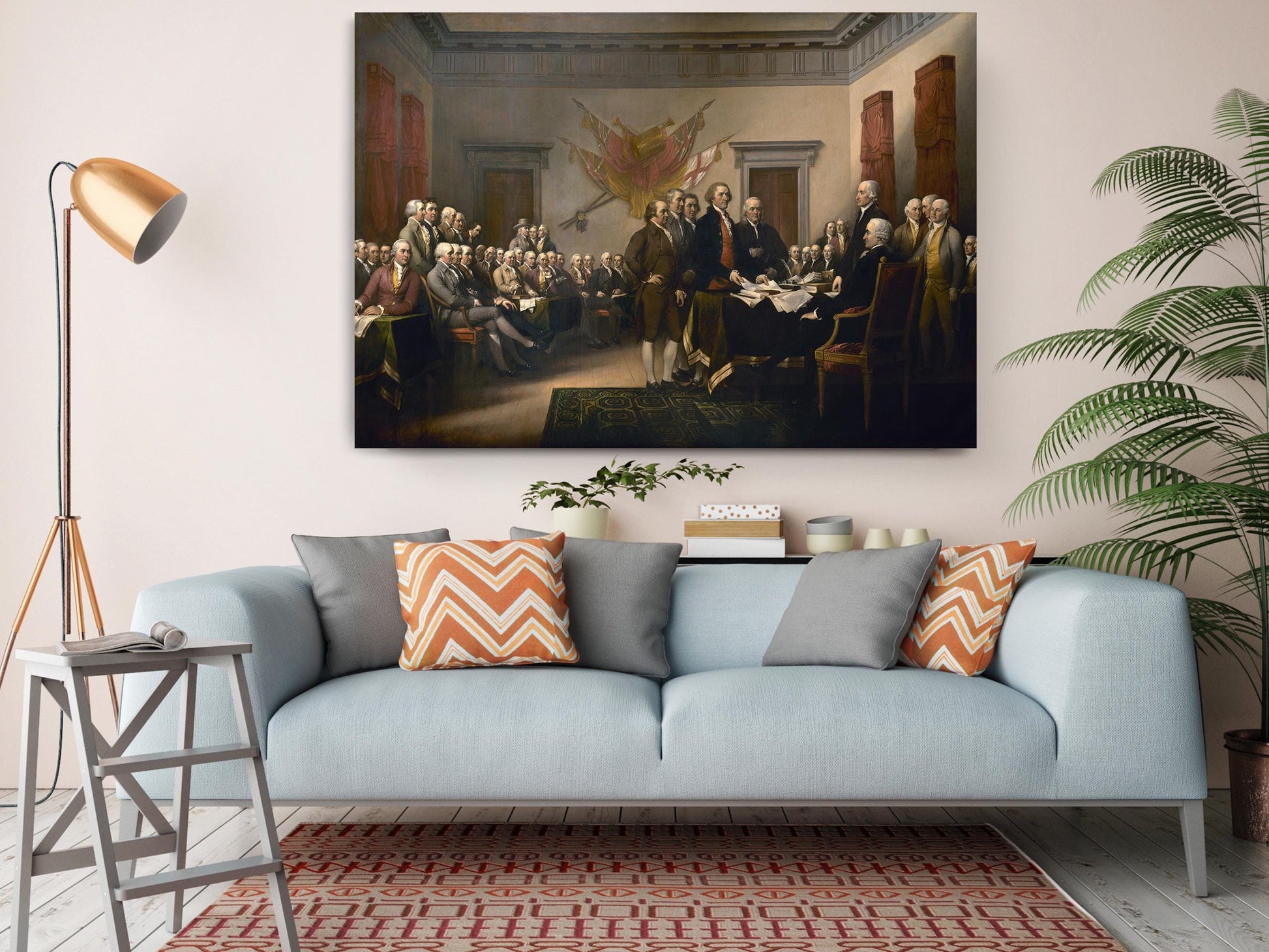 The Declaration of Independence print is a museum quality canvas wall art that brings iconic American history art into your home with vivid detail and lasting durability. This historical canvas print captures the spirit of the USA history artwork, perfect for anyone looking to add patriotic wall decor that honors the colonial art print era. Crafted by Elite Canvas, this canvas wall art is designed to inspire and educate while enhancing your living or office space.