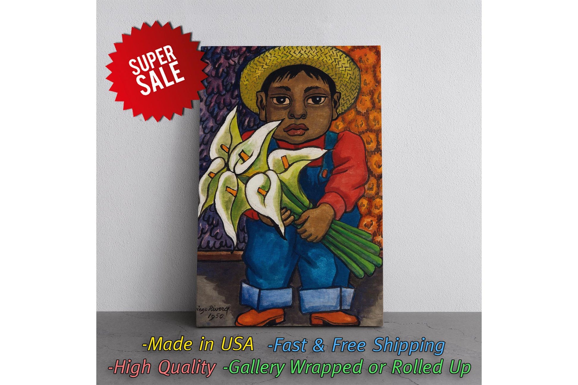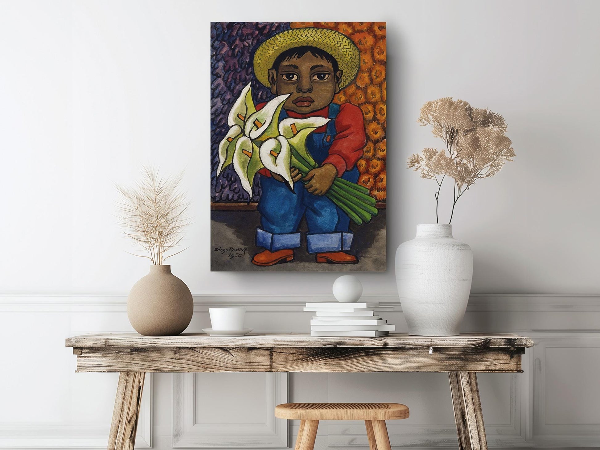 - Museum quality print showcasing Diego Rivera’s renowned child with lilies art