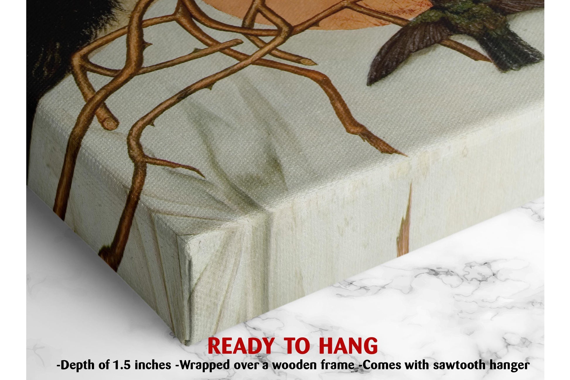 This Frida Kahlo canvas print showcases the iconic self-portrait "Thorn Necklace & Hummingbird Artwork," designed to bring vibrant culture and artistic passion into your home or office. Our Frida Kahlo canvas print uses museum-quality pigment-based inks on artist grade canvas, delivering a fade resistant print that preserves rich colors and intricate details for years. Choose between a rolled canvas print for custom framing or a ready to hang canvas option that arrives pre-stretched on a solid wood frame, ensuring effortless installation and immediate display.