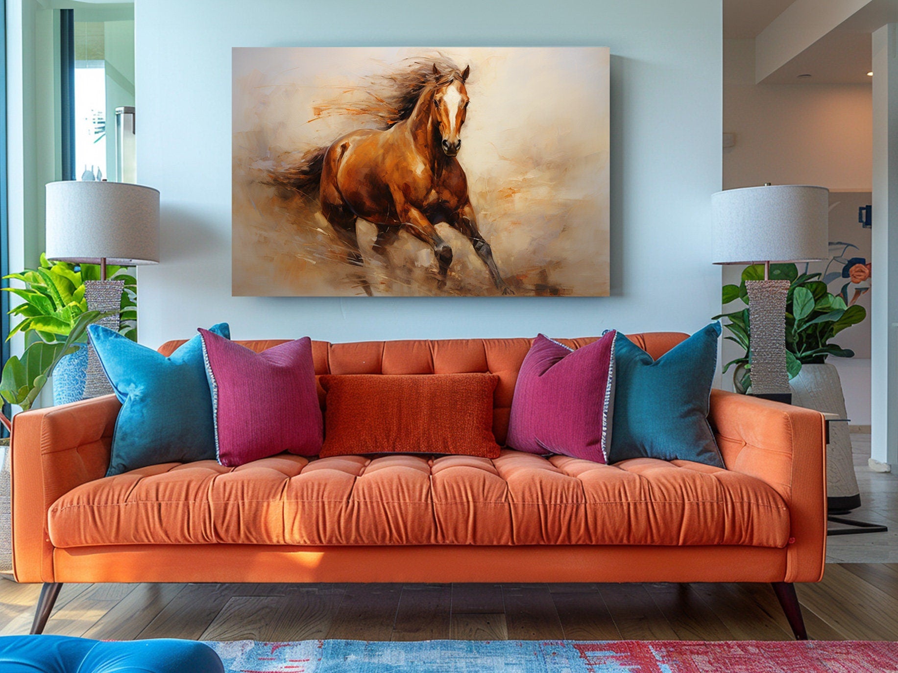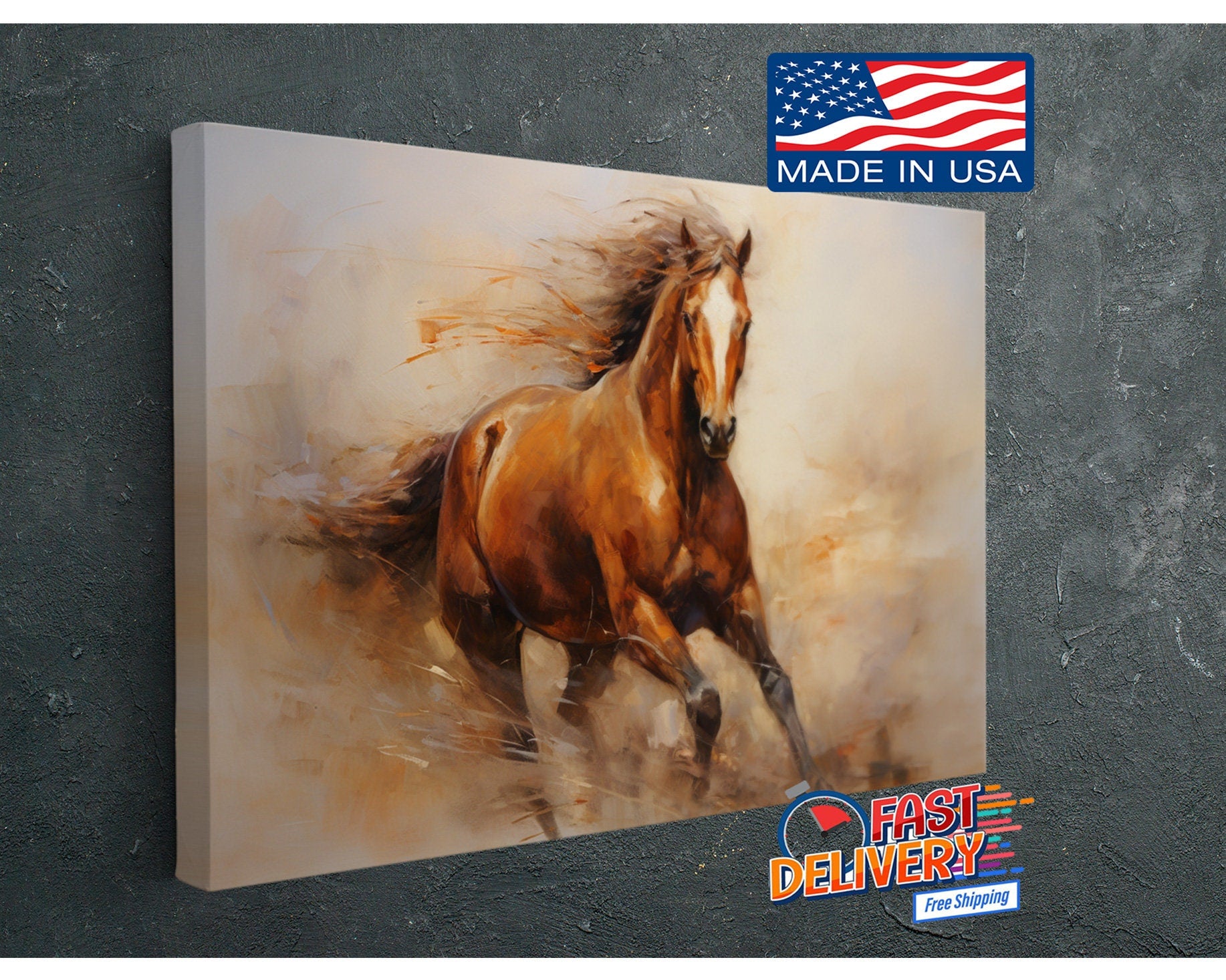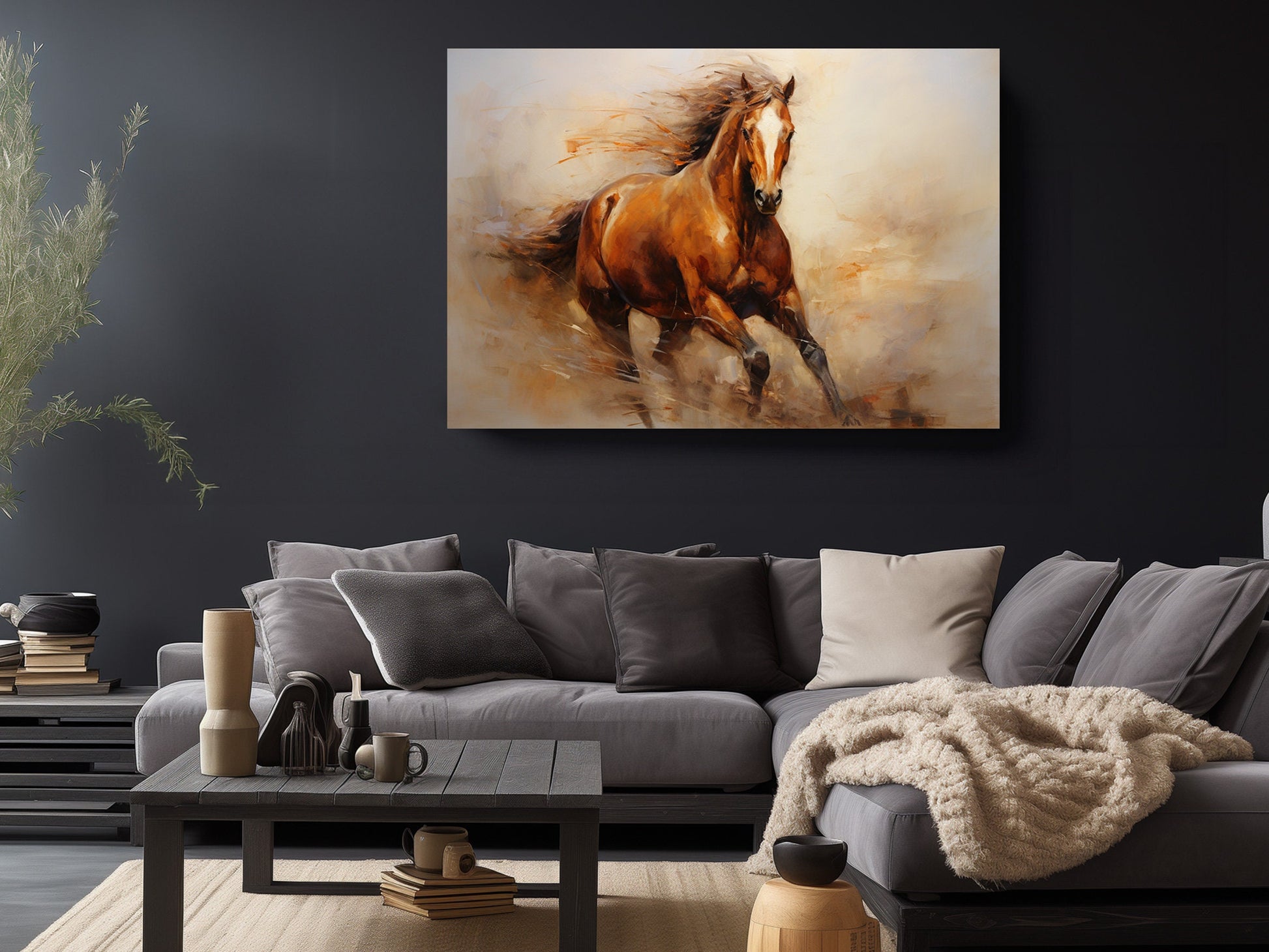 This horse oil painting captures the dynamic beauty of a galloping brown horse, making it an exceptional canvas art print for animal wall decor enthusiasts. Crafted by Elite Canvas, this museum quality print brings the energy and grace of equine art into your living space, offering a vivid focal point that transforms any room. Printed using fade resistant ink on artist grade canvas, this brown horse artwork ensures long-lasting vibrancy and durability.