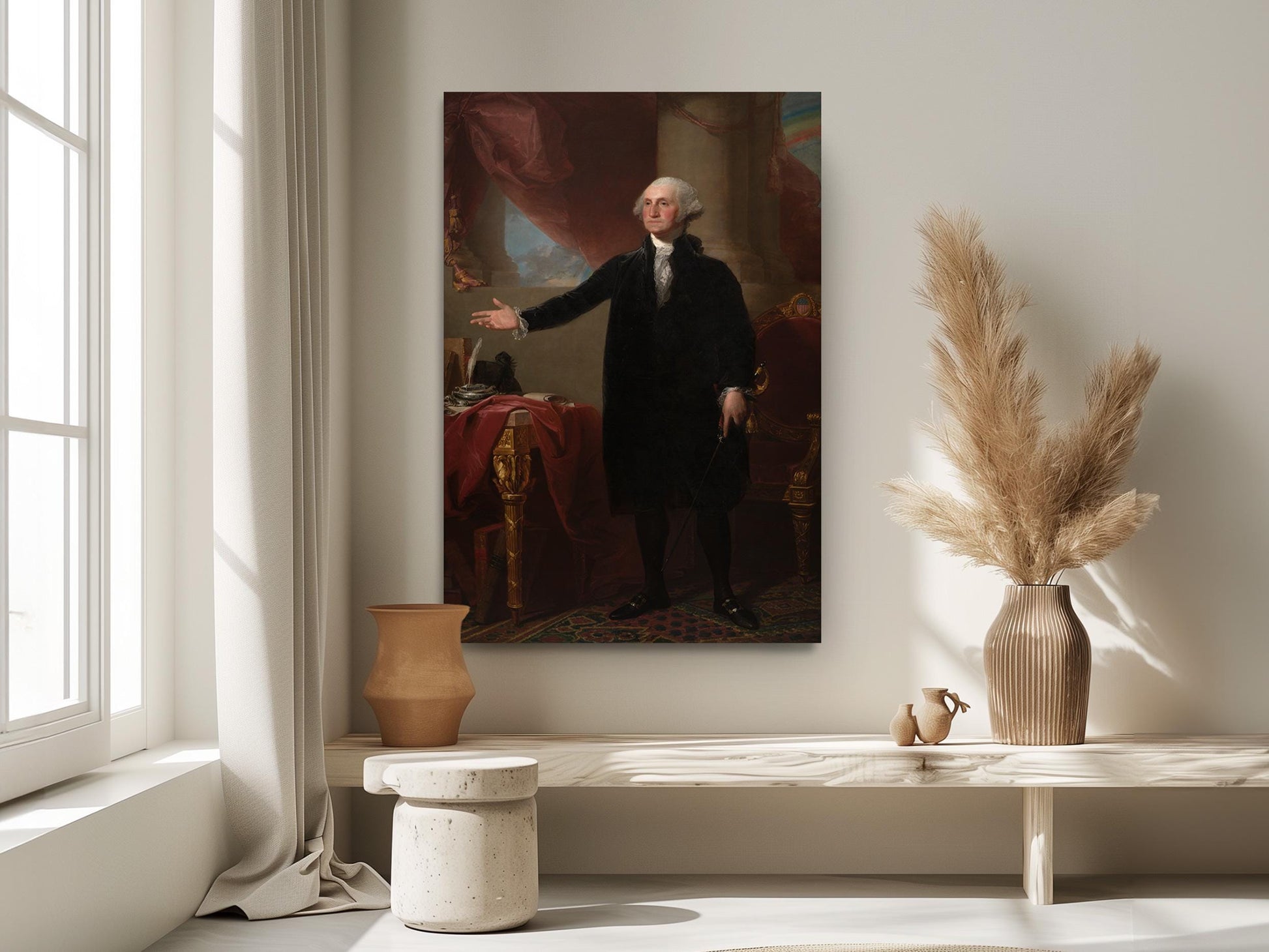 The George Washington canvas print brings the iconic Gilbert Stuart painting into your home as a museum quality canvas that elevates any space with its classic portrait print appeal. This American historical art piece offers a fade resistant canvas surface and scratch resistant print, delivering a durable canvas print that preserves vibrant colors for years. Perfect for collectors and history enthusiasts, this framed wall art honors the first U.S. president with premium craftsmanship and lasting beauty.