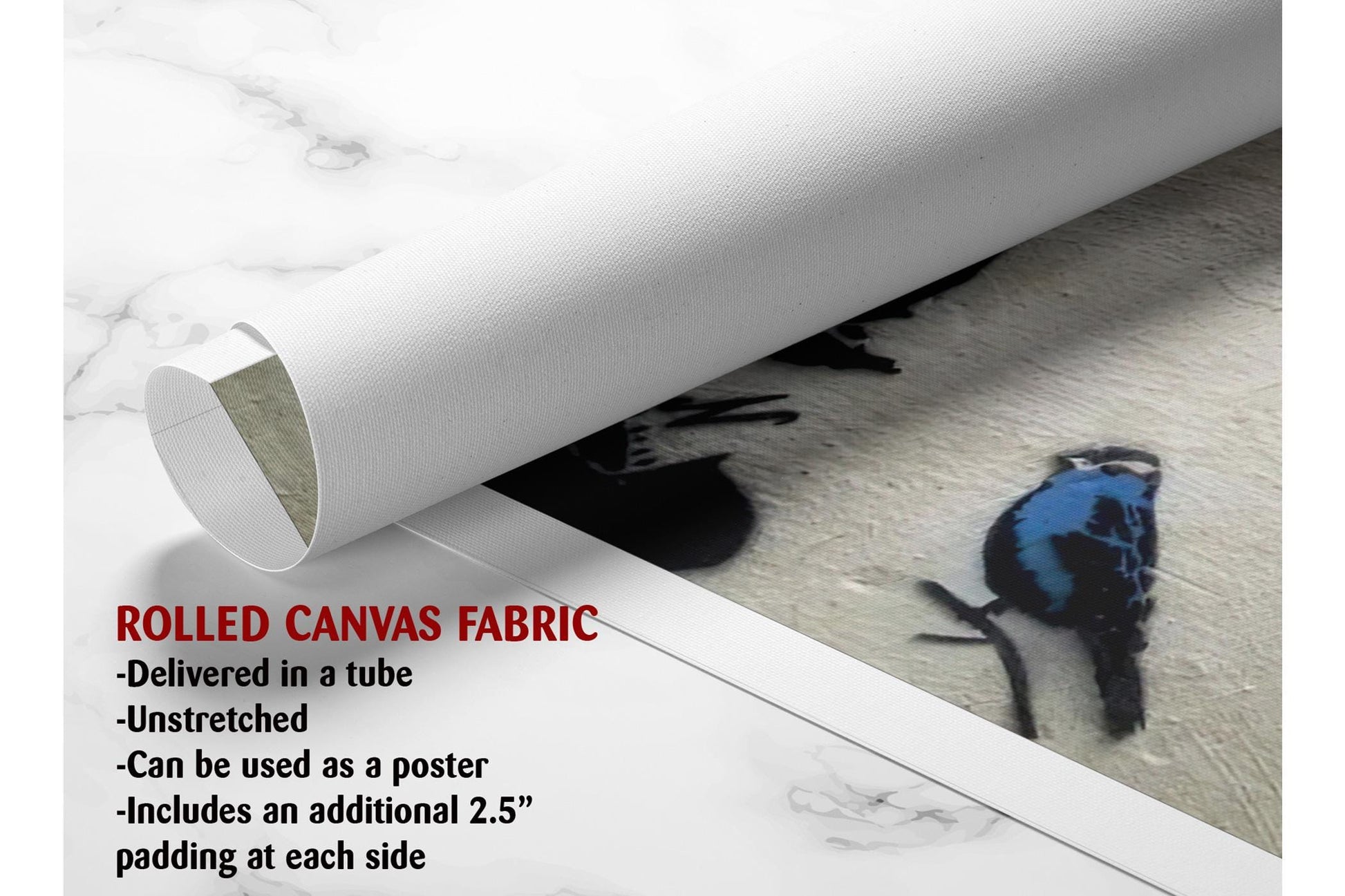 - Rolled canvas art shipped in a protective tube with a free 2.5" border for custom framing