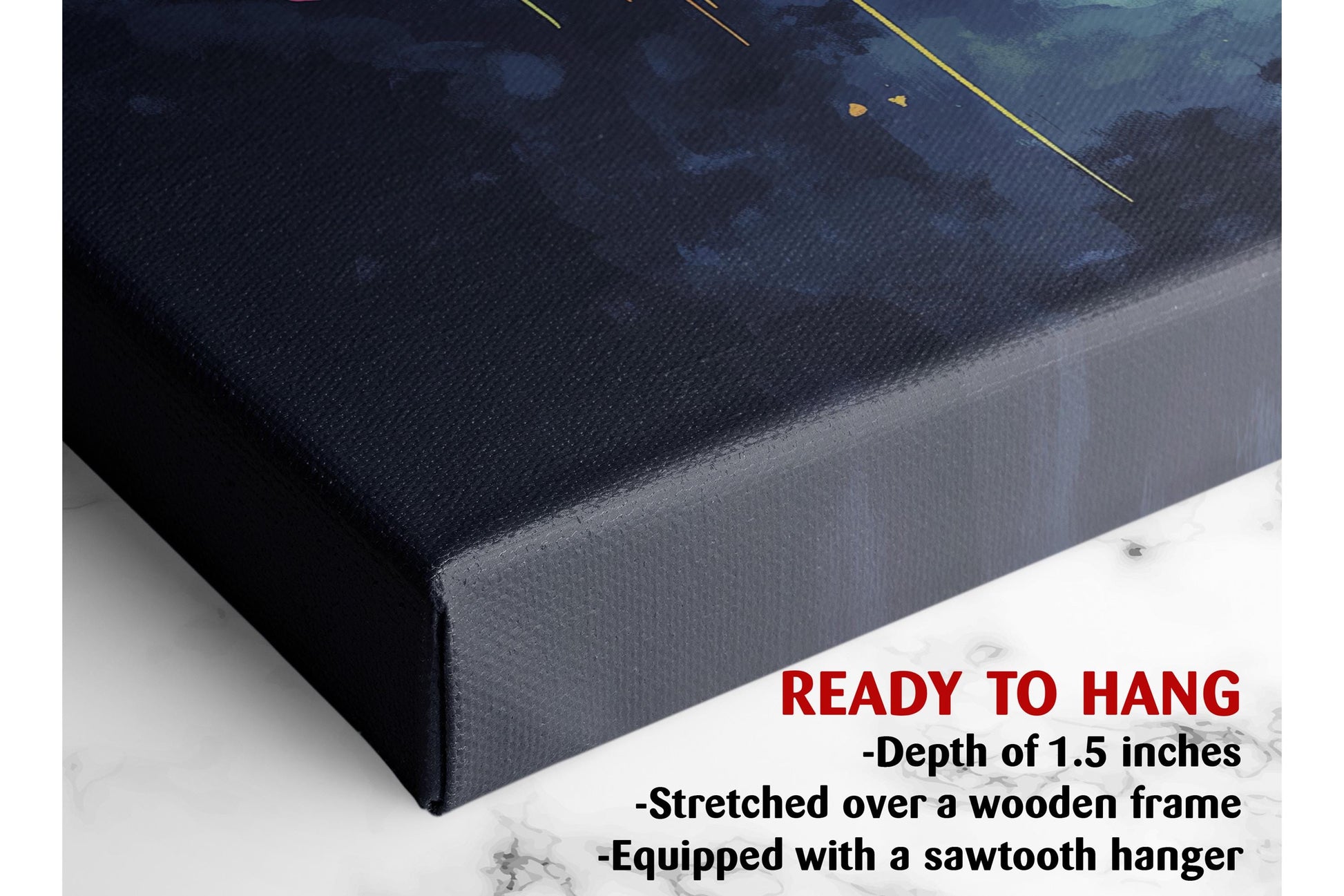 - Ready to hang print pre-stretched on a solid wood frame canvas