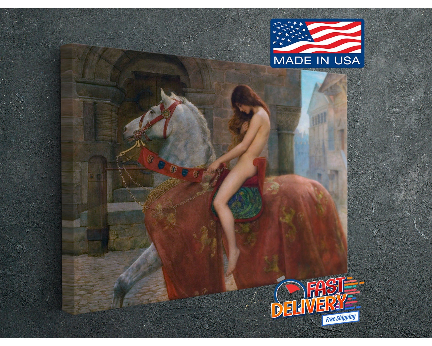 This Lady Godiva painting reproduction is ideal for collectors, art enthusiasts, or anyone seeking to enrich their space with a piece of historical painting print excellence. Elevate your walls with this classic art decor that combines traditional beauty with modern printing technology. Whether you prefer the flexibility of rolled canvas or the convenience of ready to hang art, this product delivers museum-quality craftsmanship backed by Elite Canvas’s commitment to superior quality and customer satisfaction.