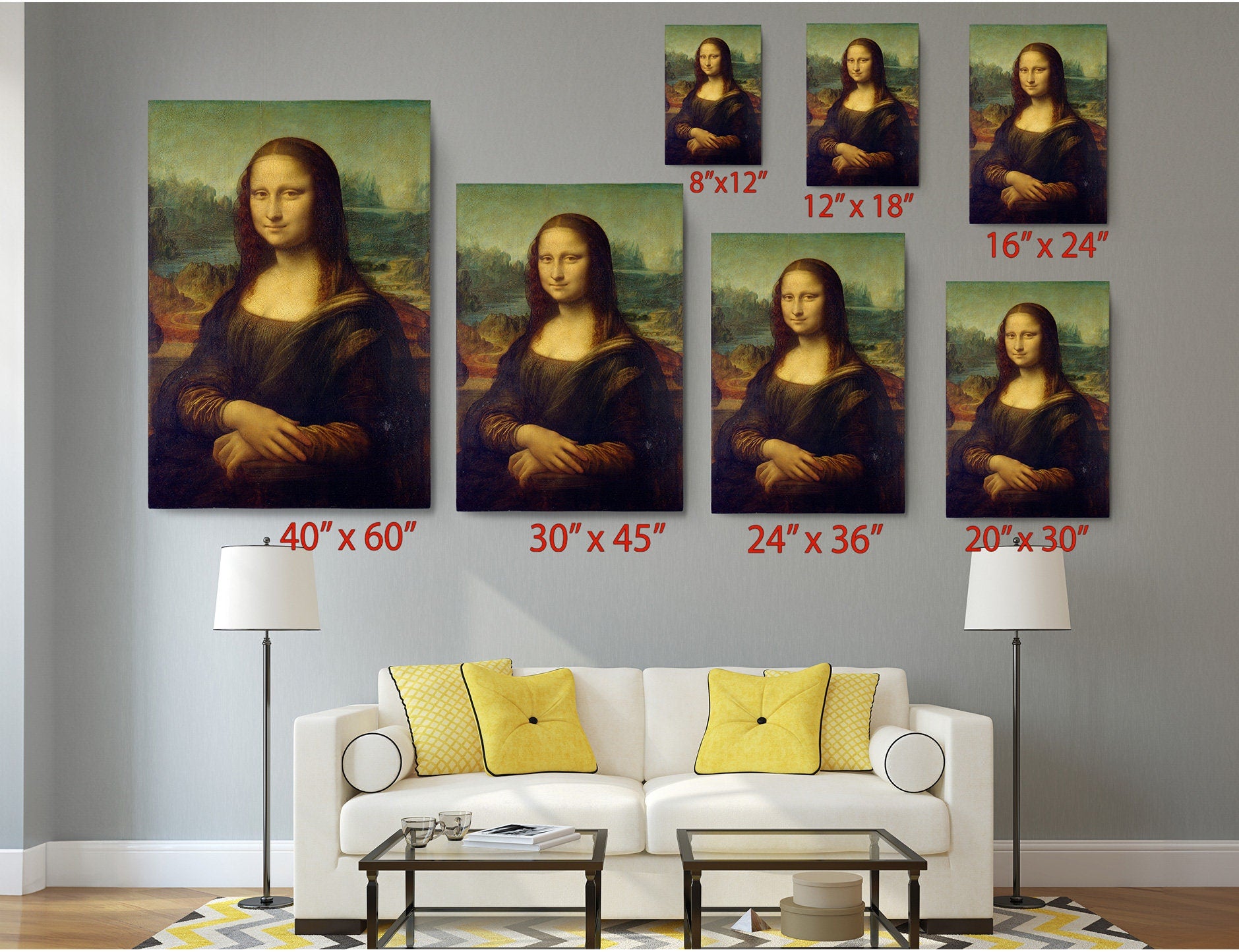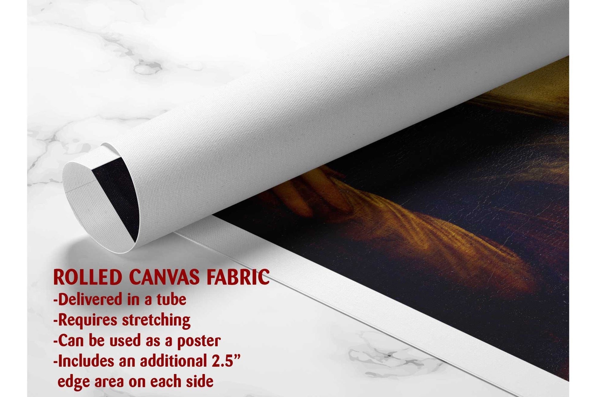 The Mona Lisa canvas print offers a stunning Renaissance artwork reproduction that brings classic painting print elegance to your home or office. This museum quality canvas captures every detail of Leonardo da Vinci's masterpiece, delivering fine art reproduction with vibrant colors and crisp clarity. Crafted on artist grade canvas using pigment-based inks, this Mona Lisa canvas print ensures fade resistant canvas and scratch resistant print durability for lasting beauty. Choose between rolled canvas art, shipped securely in a protective tube with a free 2.5" border for custom framing, or a ready to hang print pre-stretched on a solid wood frame canvas for immediate display.