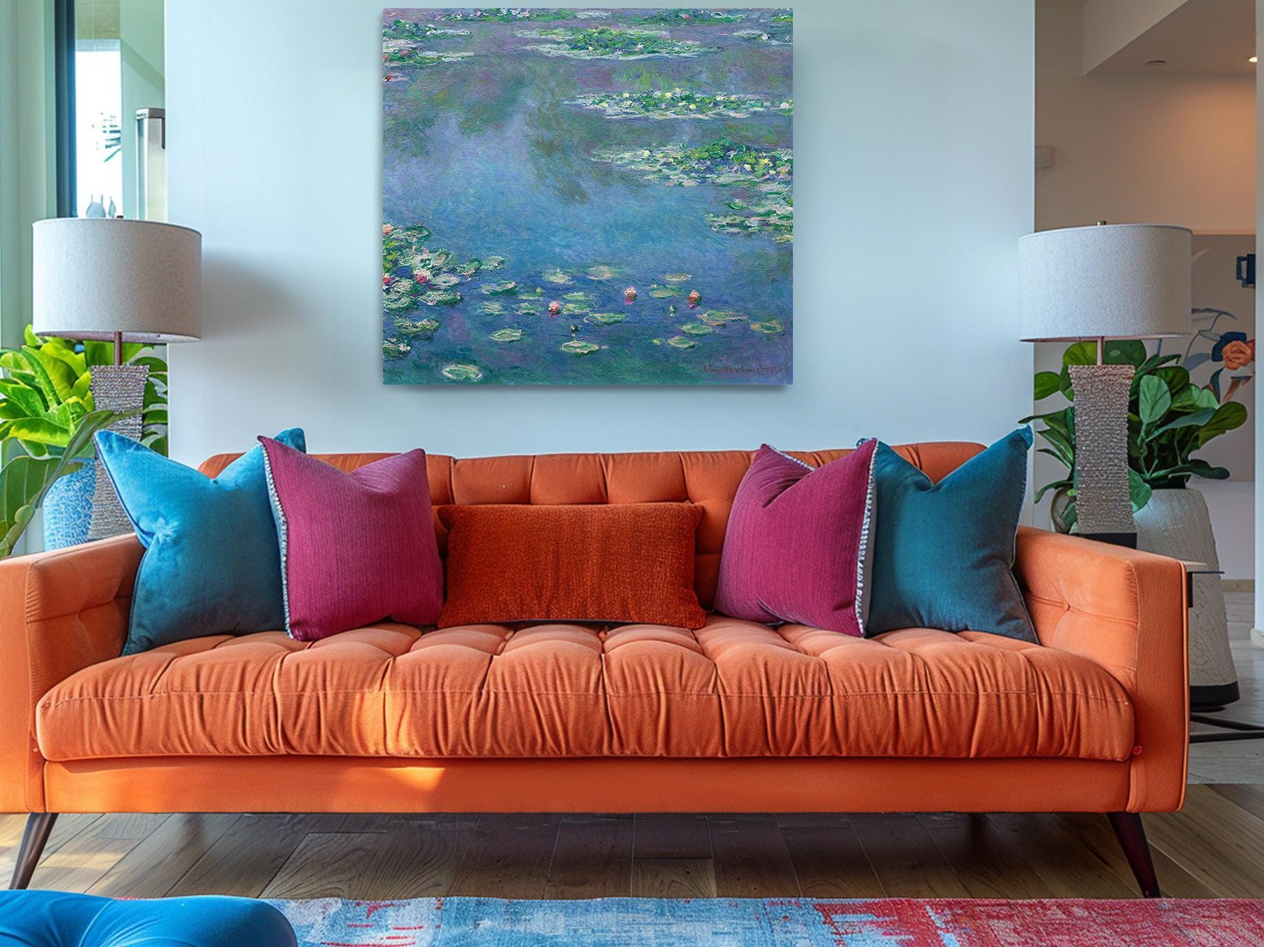The Monet Water Lilies print is a stunning modern impressionist wall art piece that transforms any space with timeless beauty and vibrant color. This museum quality canvas print captures Claude Monet’s iconic water lilies painting with exceptional detail, offering a fine art print that elevates your decorative wall decor. Crafted by Elite Canvas, this canvas art print comes in two formats to suit your needs: rolled canvas print or ready to hang art.