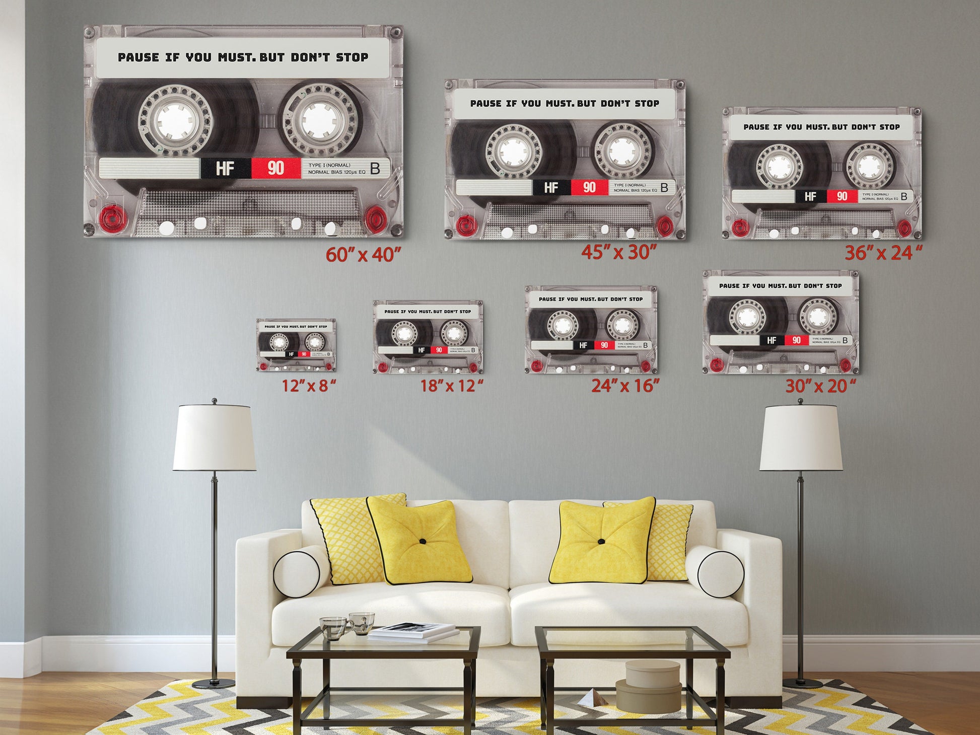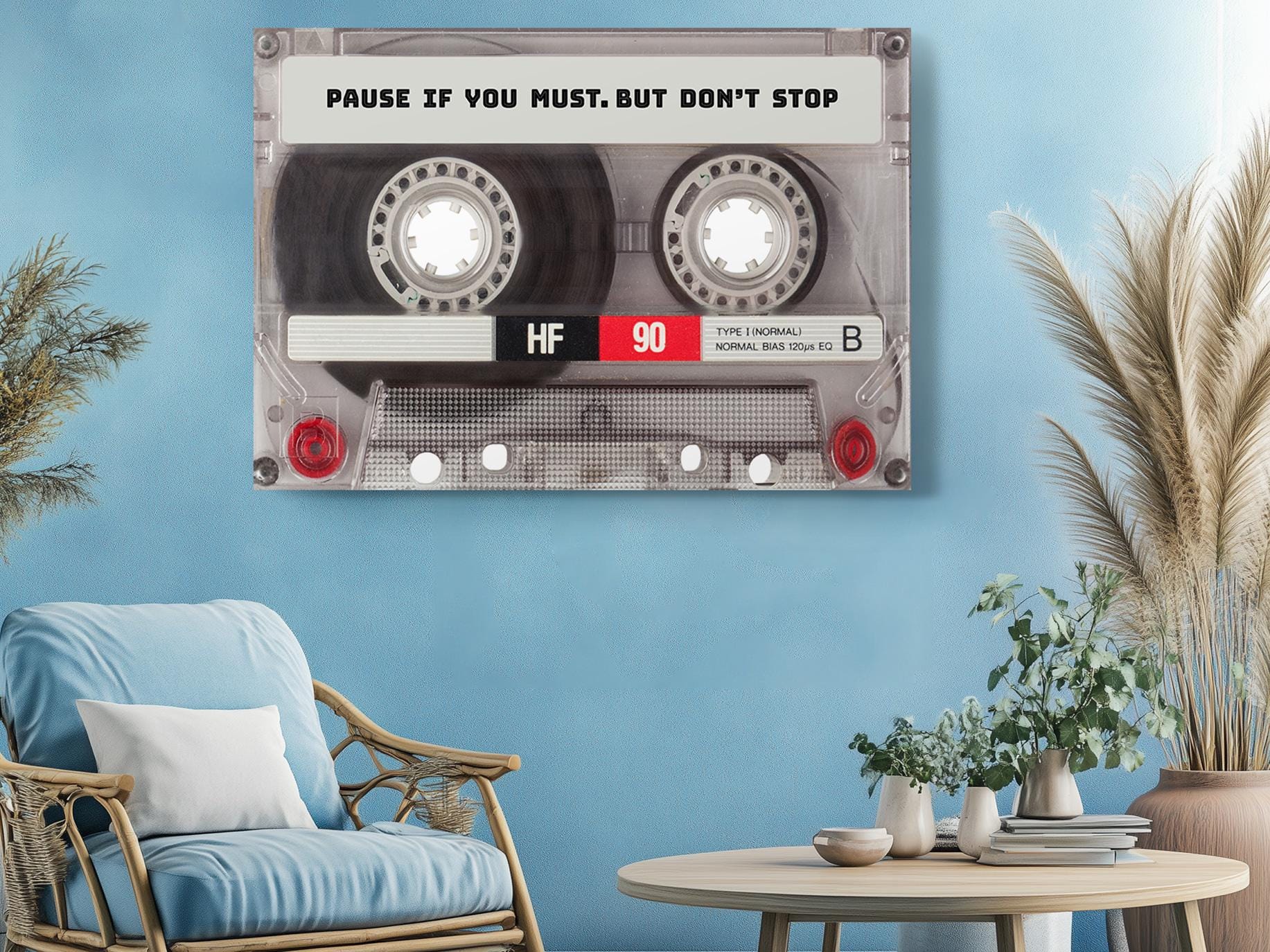 This motivational canvas print titled "Pause But Don't Stop" combines vintage cassette tape decor with inspiring words to uplift any space. Designed as a motivational canvas print, it transforms your room with modern wall decor that encourages persistence and positivity. Crafted from artist grade canvas, this durable canvas print resists fading and scratches, ensuring long-lasting beauty and impact.