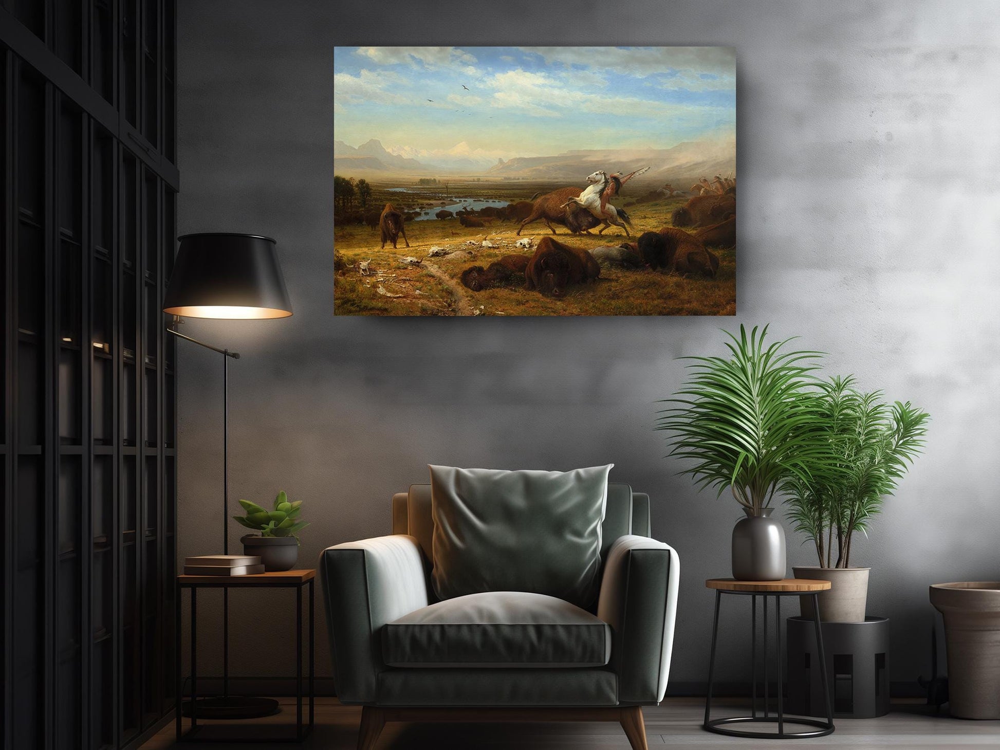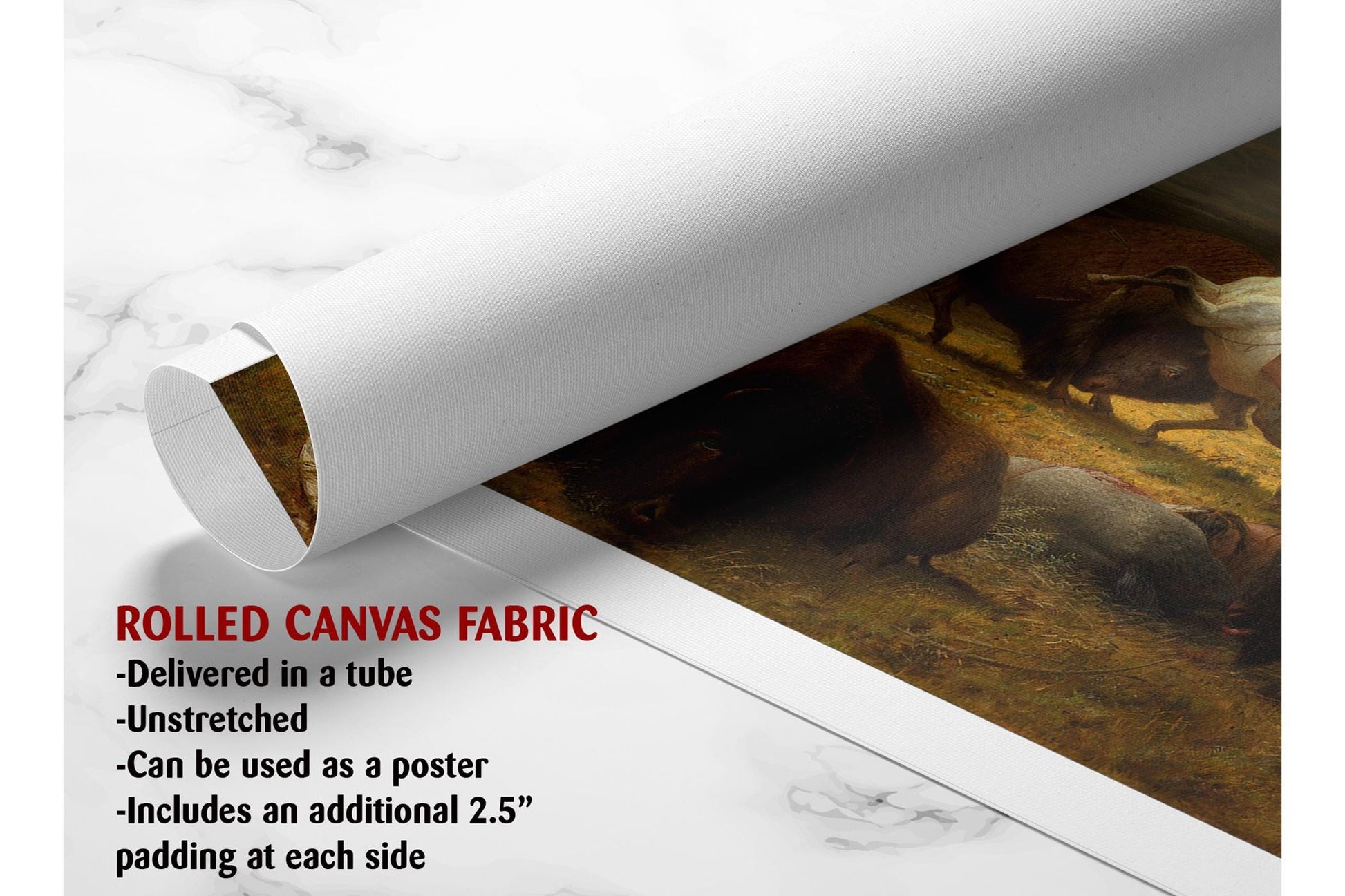 The Buffalo Hunt Canvas is a stunning native american print designed to bring authentic western wall art into your home while celebrating indigenous culture. This buffalo hunt canvas captures the spirit of the American buffalo artwork with museum quality canvas and vivid pigment-based inks, delivering fade resistant canvas that maintains its beauty over time. Whether you choose the rolled canvas print or ready to hang art, you will enjoy durable canvas print options crafted to enhance your western themed decor effortlessly.