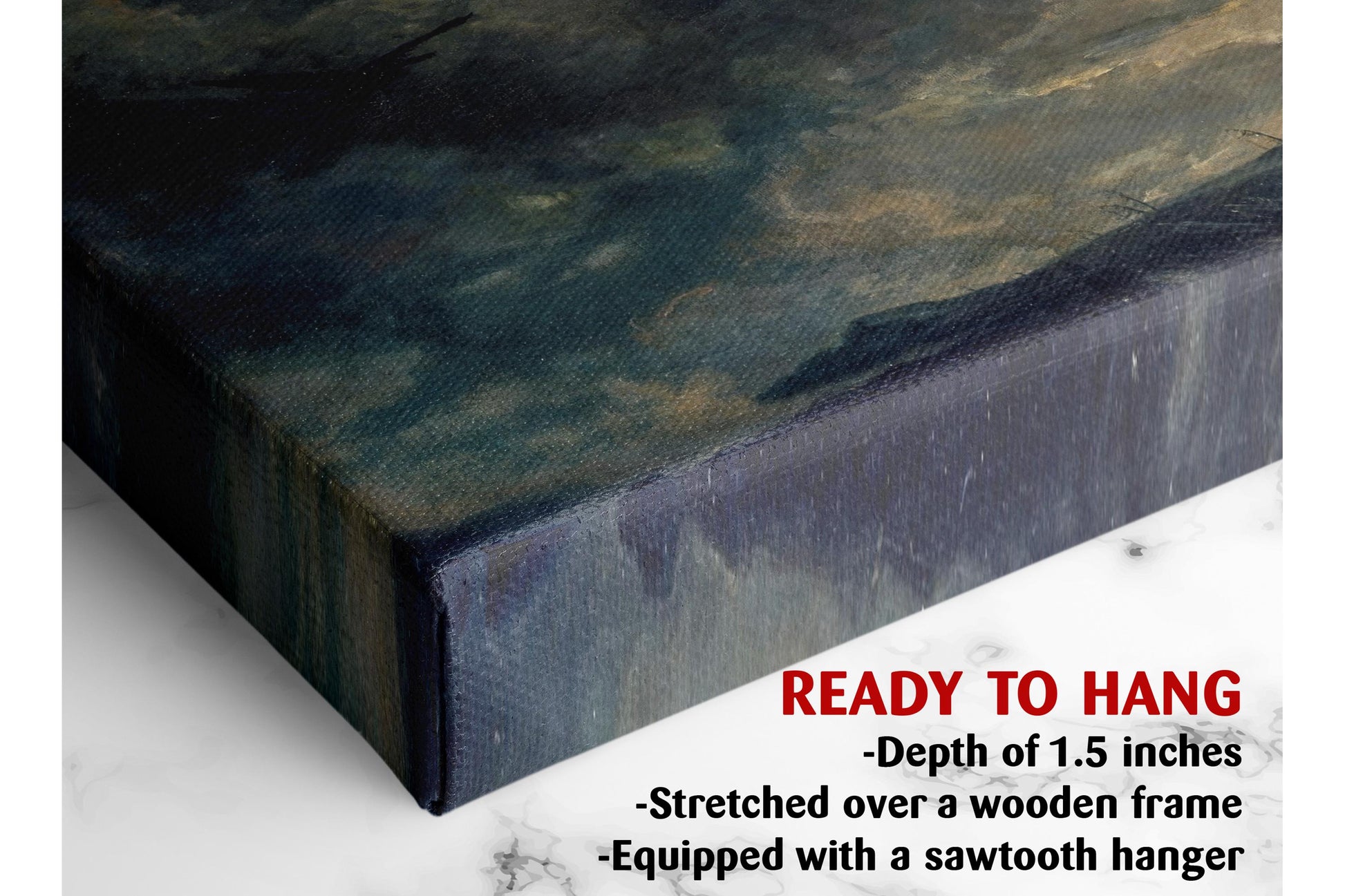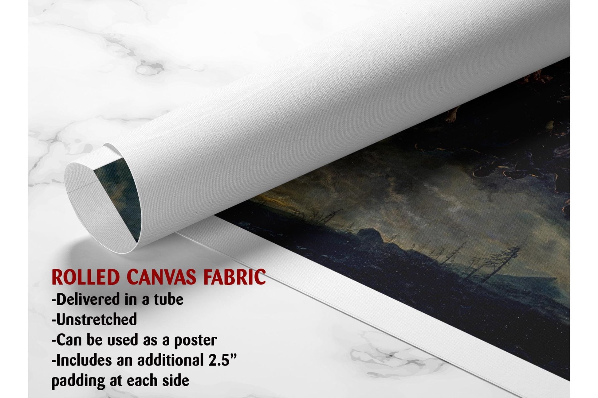 This battle scene canvas blends rich colors and intricate detail to create a captivating focal point in any living room, office, or gallery wall. The twilight sky artwork adds depth and atmosphere, inviting conversation and admiration from all who see it. Whether you choose the rolled canvas art or the ready to hang print, this artist grade print delivers museum quality craftsmanship combined with ease of installation.