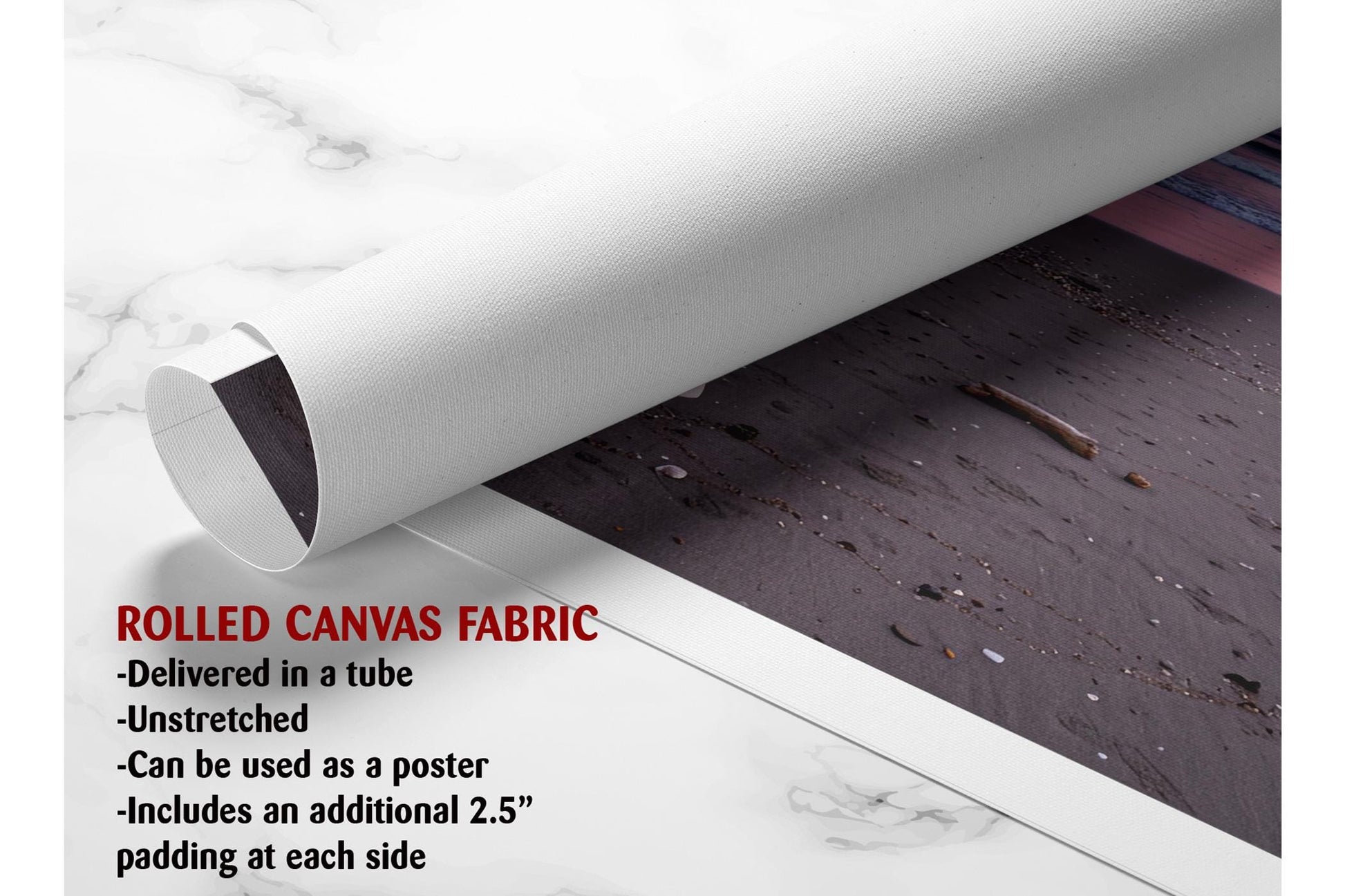 • Rolled canvas art shipped in a protective tube with a free 2.5-inch border, allowing you to customize stretching and framing.