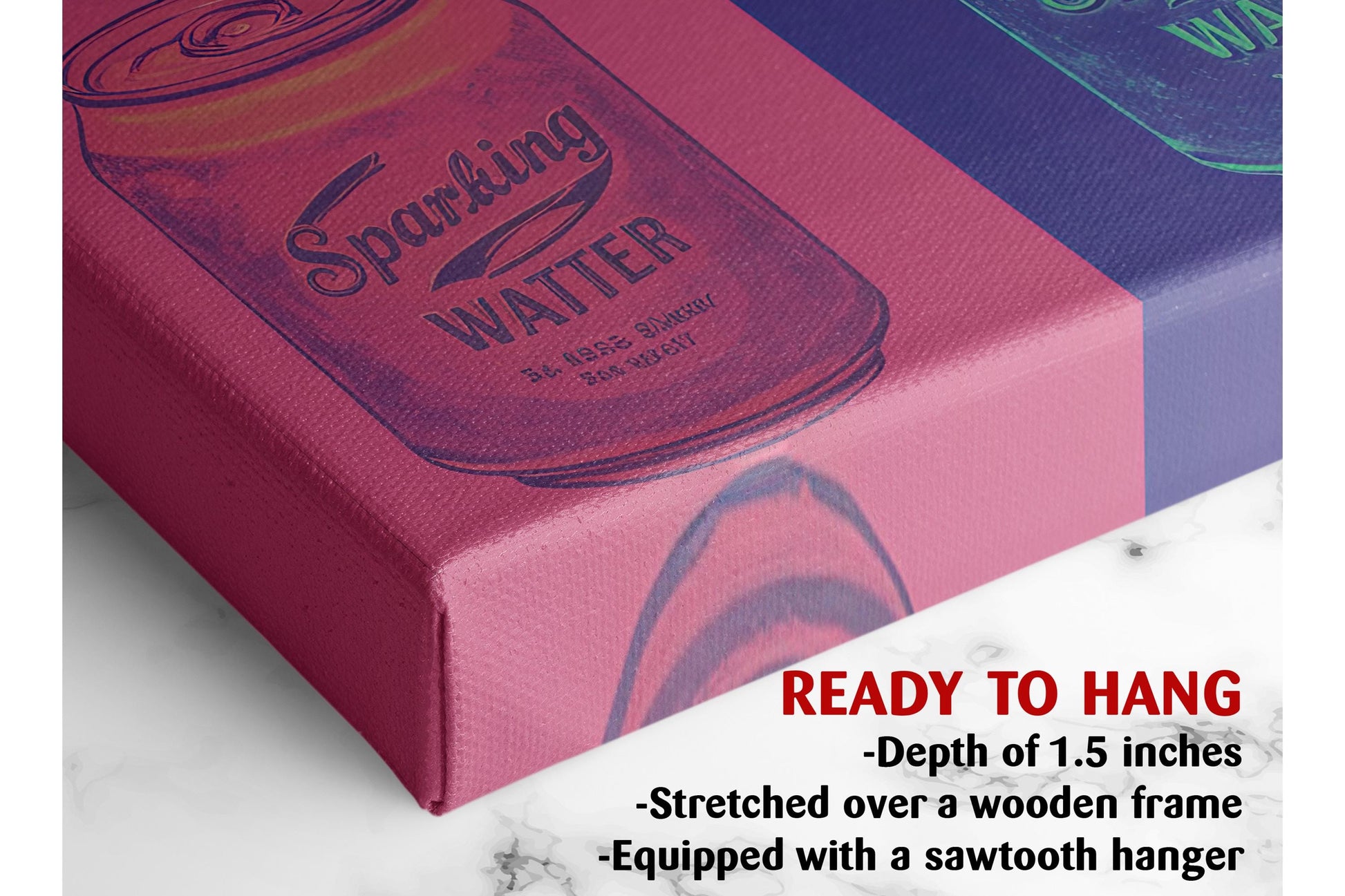 This pop art canvas print brings vibrant pop art style and retro wall decor flair to your kitchen wall art collection, creating a modern kitchen decor statement that energizes your space. Crafted by Elite Canvas, this sparkling water print is a museum quality canvas wall hanging designed to deliver both beauty and durability. The artist grade canvas uses pigment-based inks to ensure a fade resistant print that maintains its vivid colors over time, while the scratch resistant canvas surface keeps it looking pristine even in busy areas.