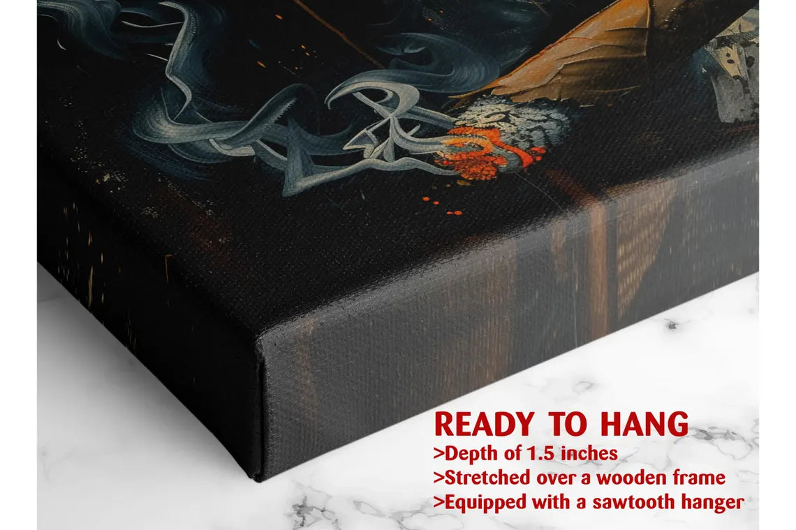 - Ready to hang art pre-stretched on a sturdy wood frame, arriving boxed and wall-ready