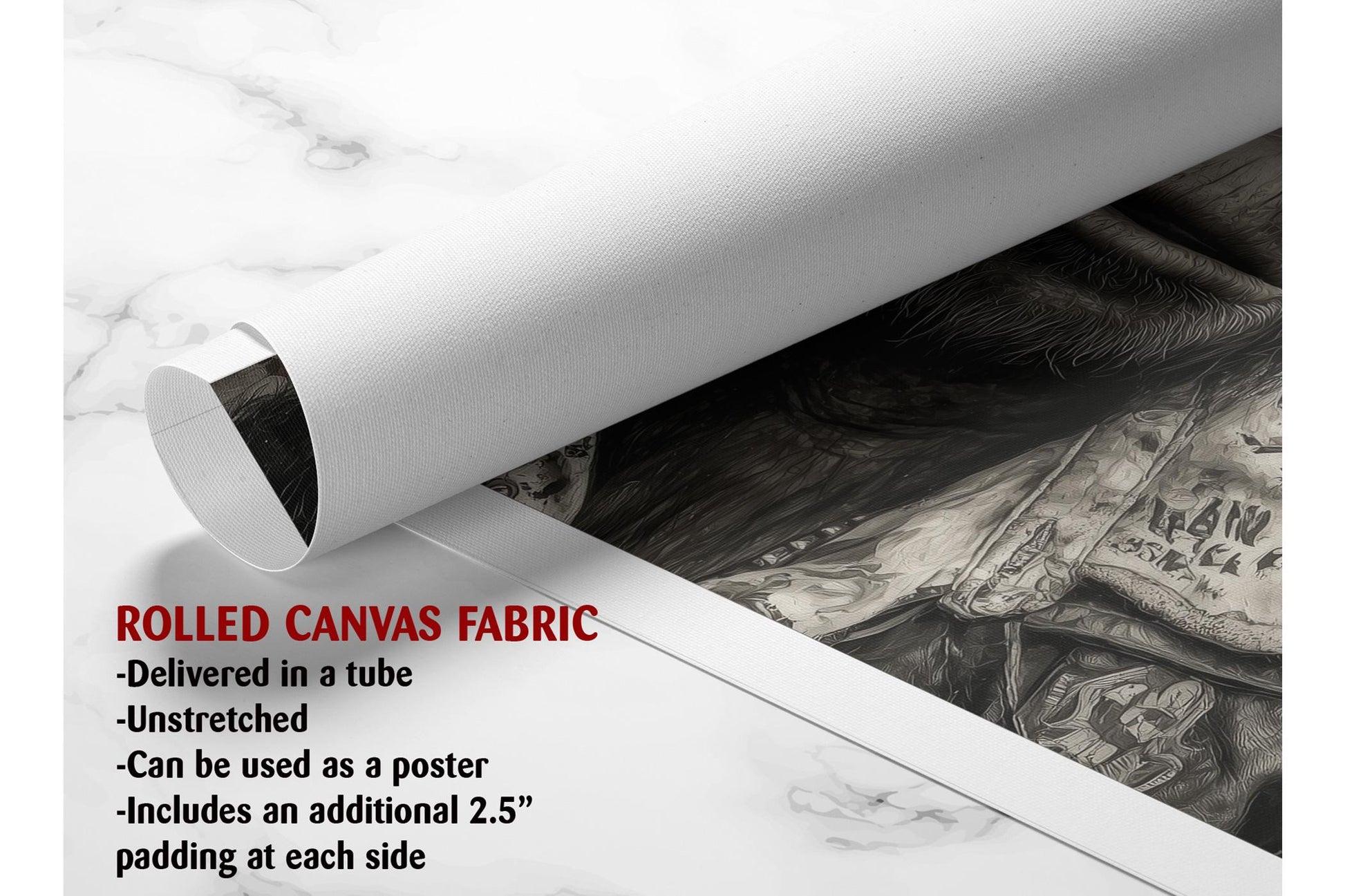 - Rolled Canvas Print: Shipped rolled in a protective tube with a free 2.5" border, allowing you to stretch and frame it yourself.