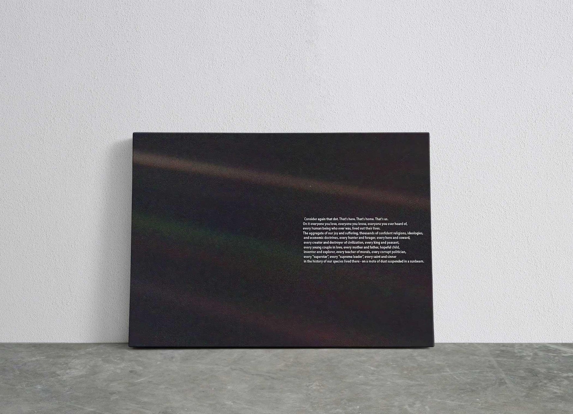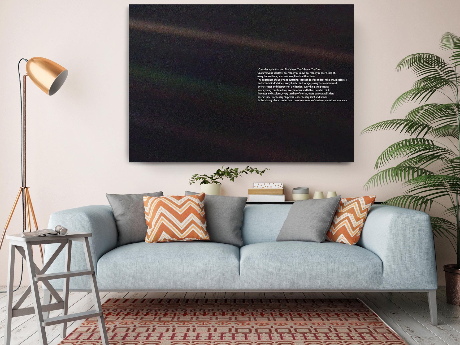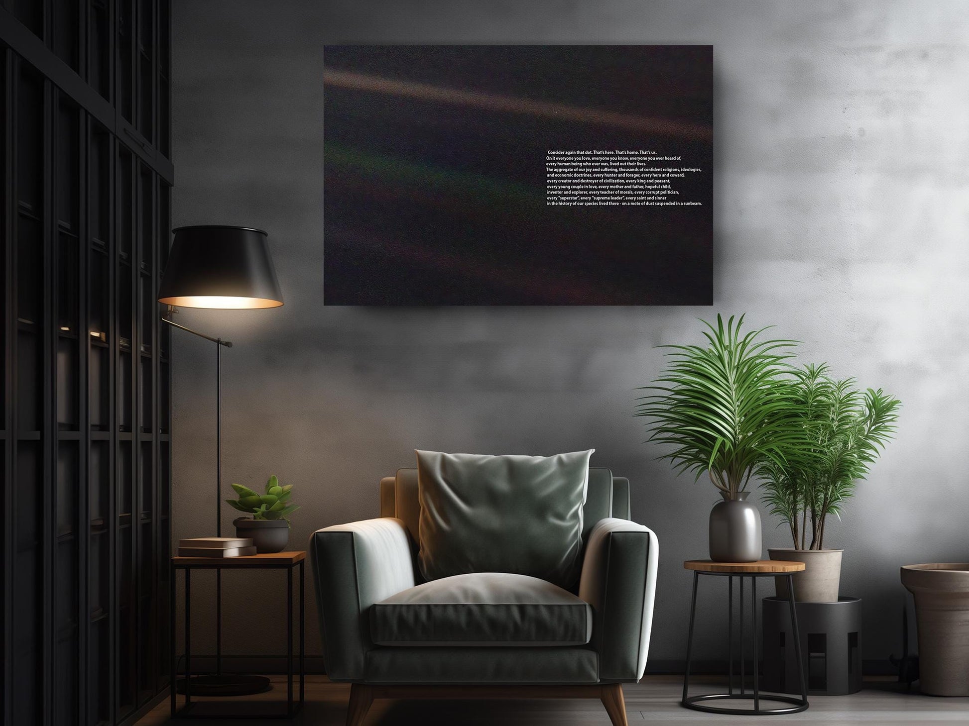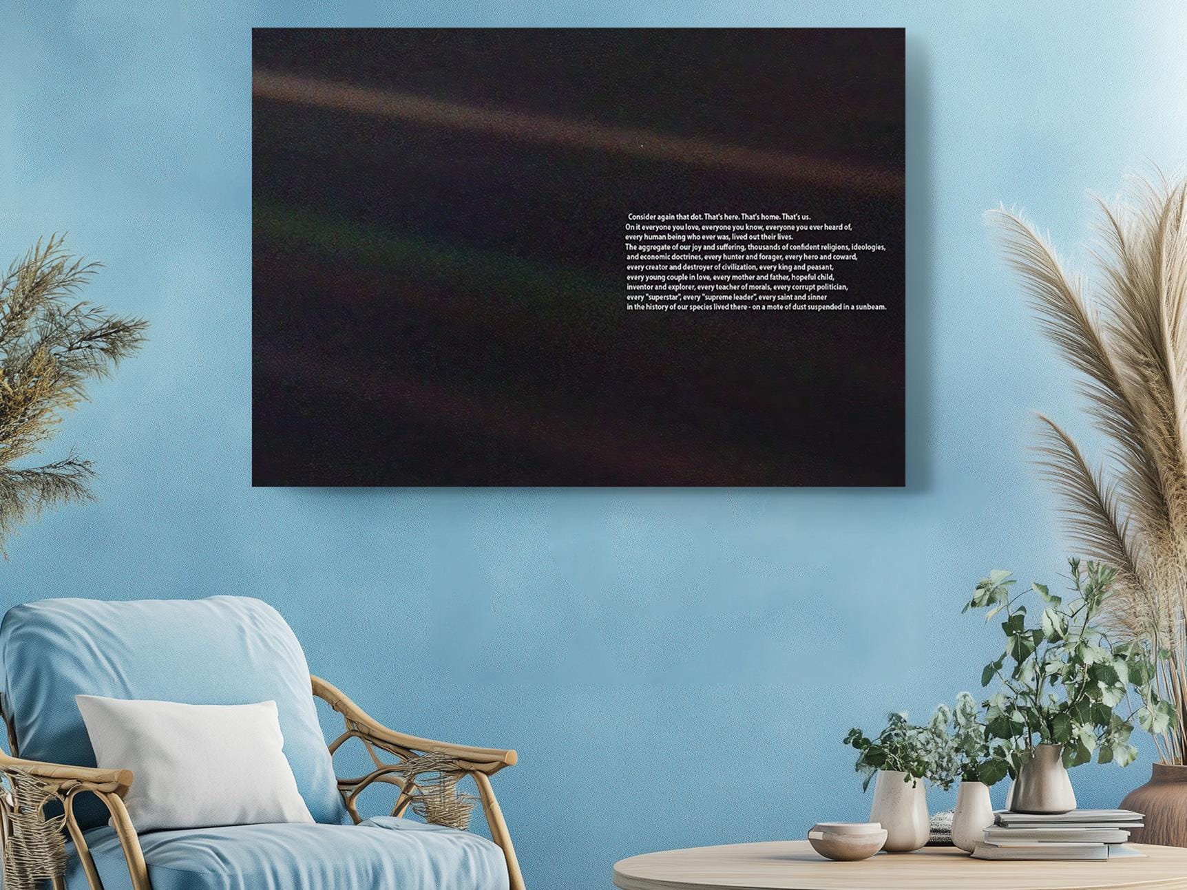 - Pale blue dot print capturing the Earth's smallness in the vast universe