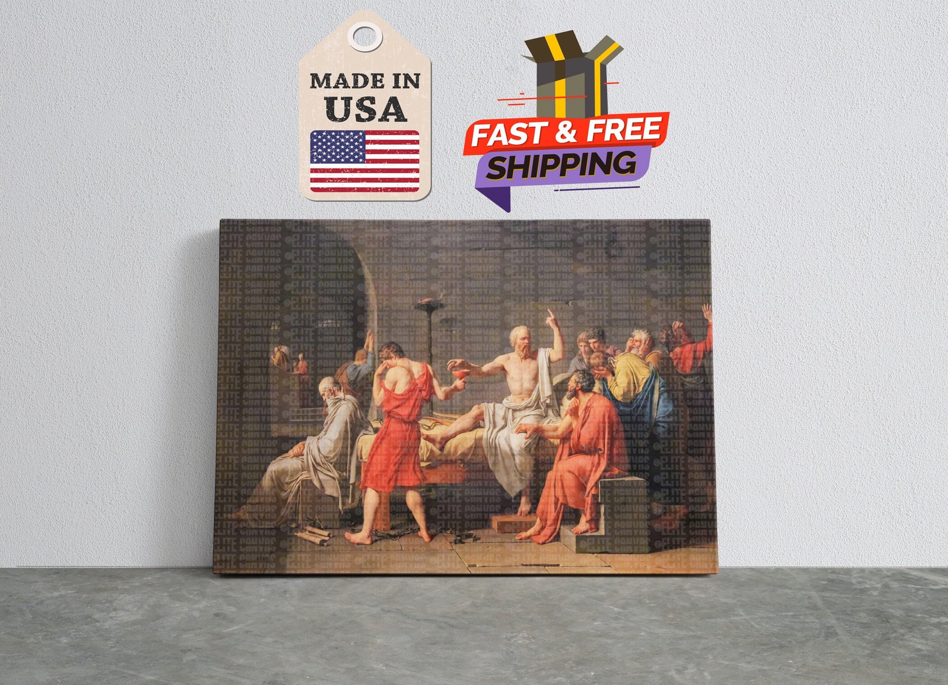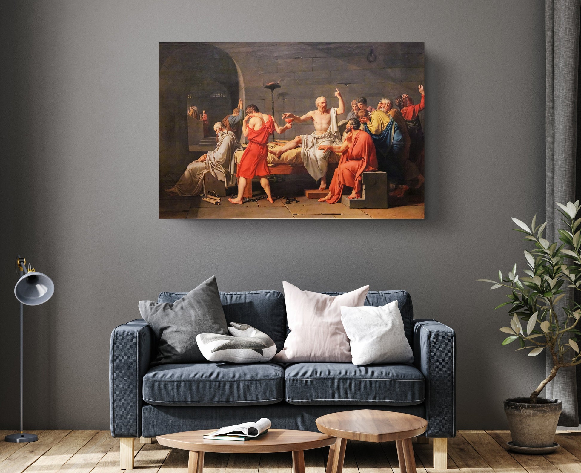 The Death of Socrates canvas is a museum-quality art print by Jacques-Louis David that brings classic art into your home with vibrant detail and lasting beauty. This canvas wall art captures the dramatic moment with precision, printed on artist-grade canvas using pigment-based inks that ensure a fade resistant canvas and scratch resistant print. Ideal for art lovers seeking a fine art reproduction, this framed canvas art offers an elegant addition to any room.
