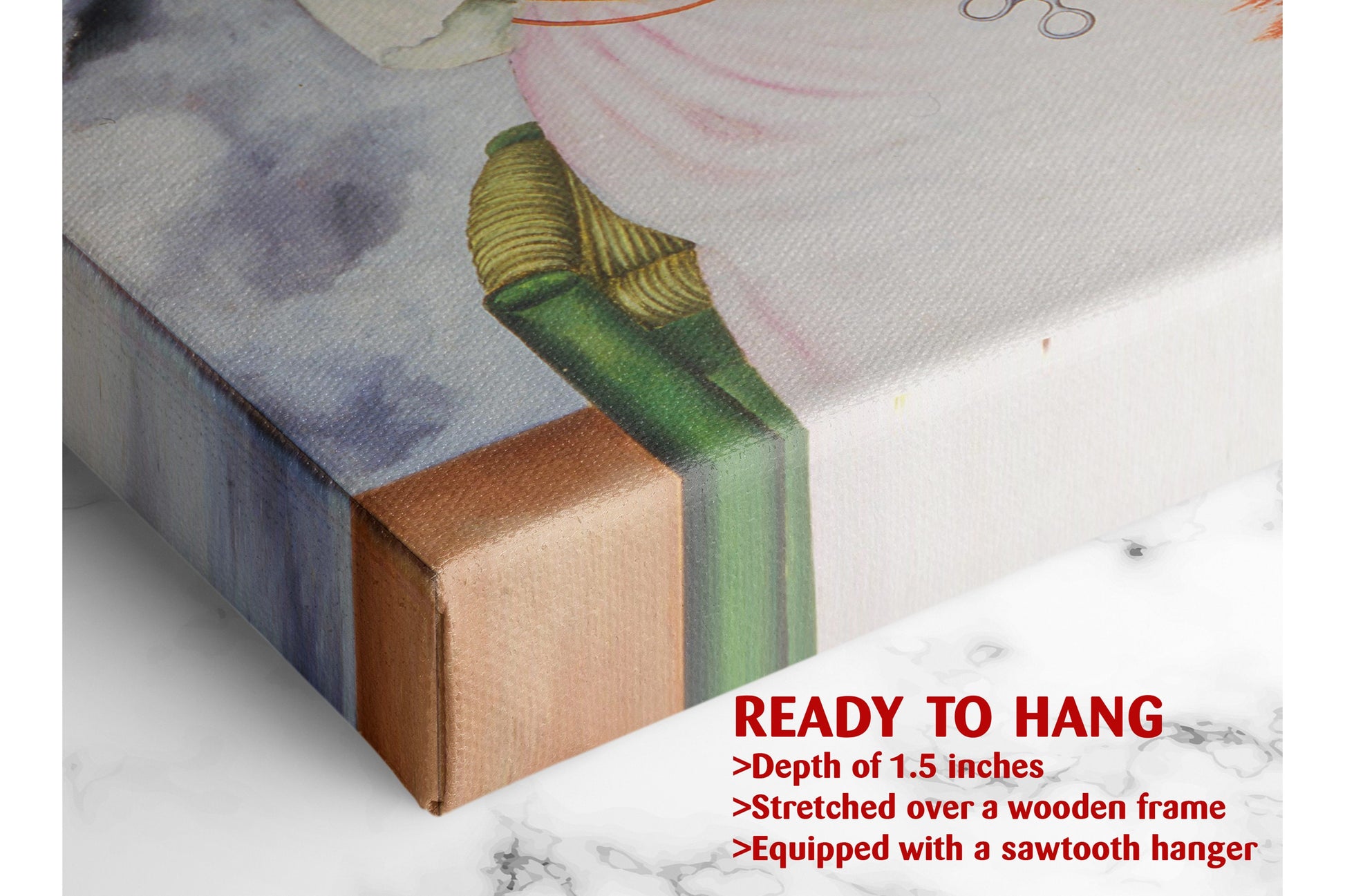 - Ready to hang canvas pre-stretched on a solid wood frame for immediate display