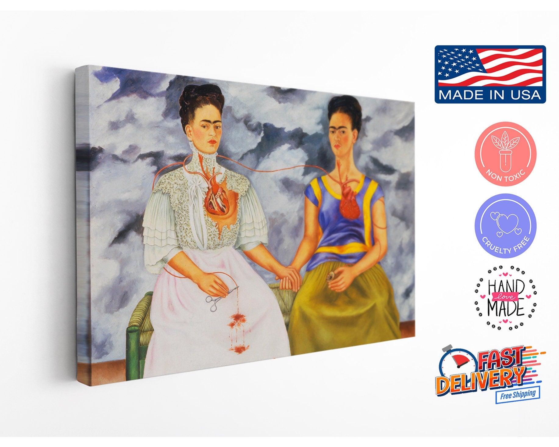 This Frida Kahlo canvas print showcases the iconic Two Fridas painting, delivering vibrant Mexican artist painting to your home with museum quality prints that elevate any space. This handcrafted canvas art uses vibrant pigment inks on artist-grade canvas to provide fade resistant art that keeps colors bright for years. Choose between a rolled canvas print or a ready to hang canvas option, each designed to offer a perfect fit and finish for your decorative wall art needs.
