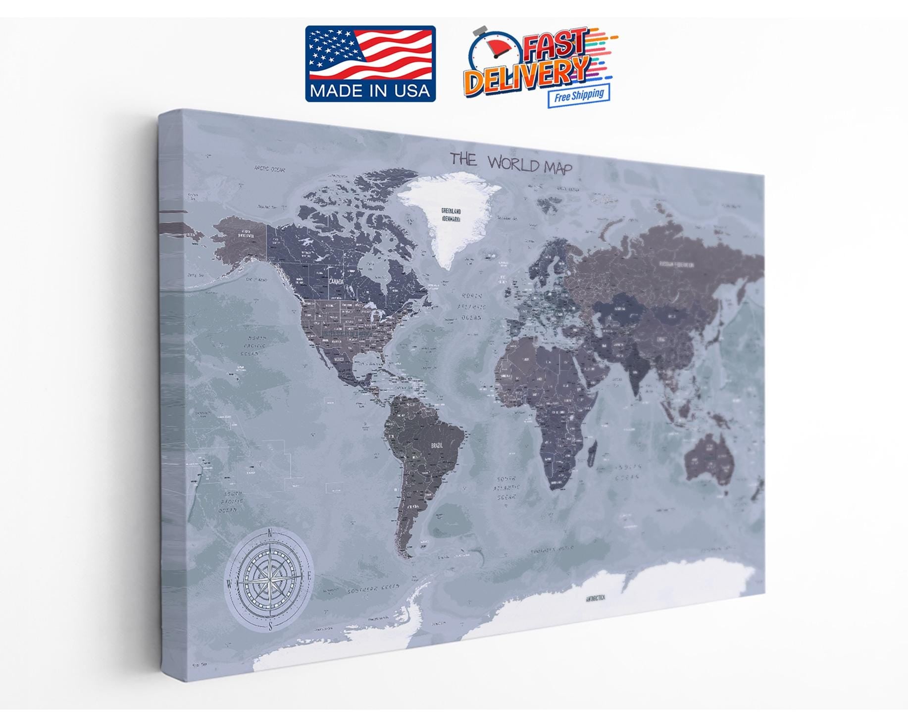 Measuring precisely to fit standard frame sizes, this world map poster is ideal for living rooms, offices, libraries, or study rooms where classic compass wall art enhances ambiance. The rolled canvas print option allows you to stretch and frame the artwork yourself, offering customization for your space. Alternatively, the ready to hang map arrives securely boxed on a solid wood frame canvas, making it easy to add an elegant antique map decor statement immediately.