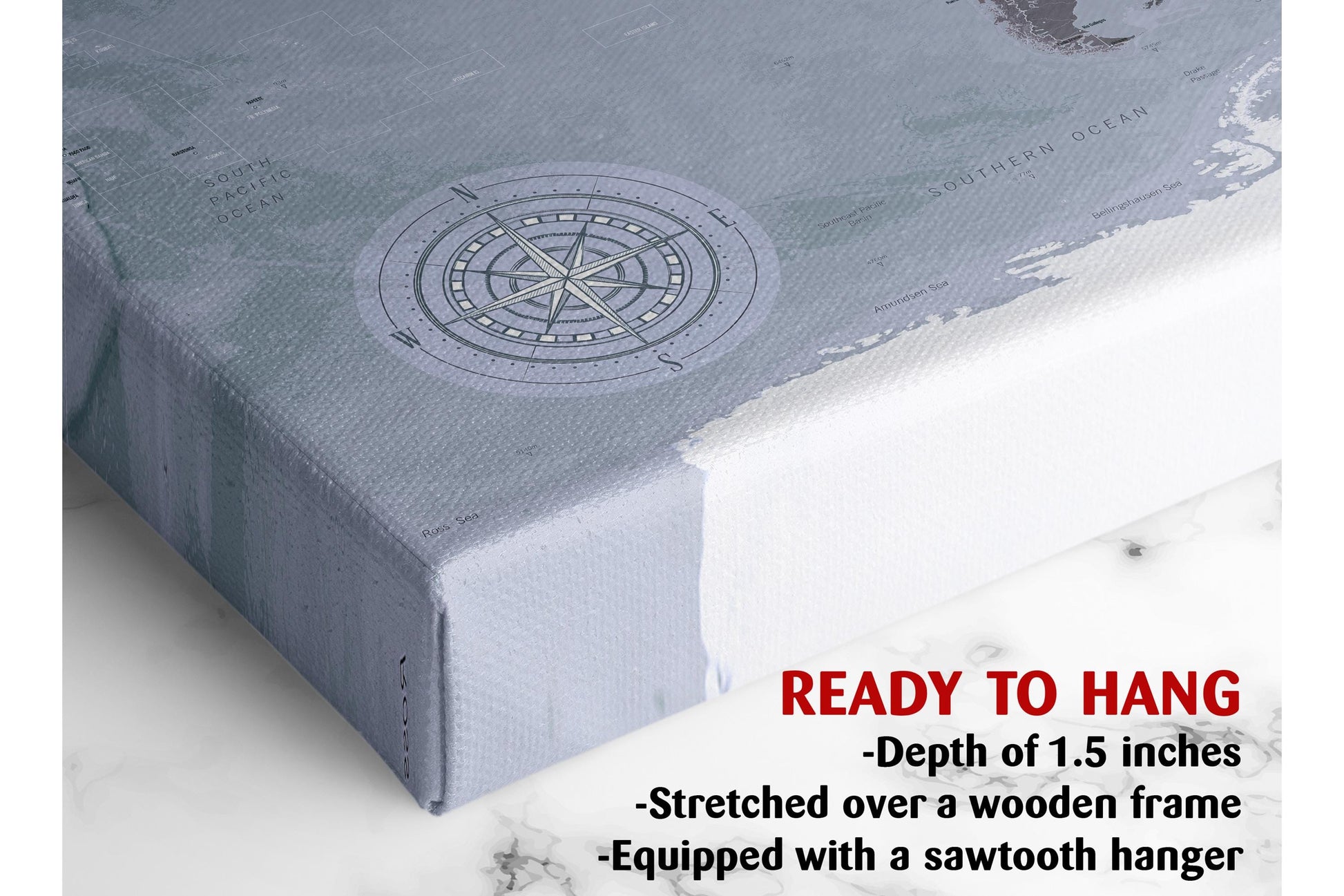 This museum quality canvas is crafted from artist grade canvas, delivering superior texture and durability. The fade resistant print uses pigment-based inks tested to withstand sunlight exposure without fading, preserving the crisp details and vibrant colors of the classic compass art design. Choose the rolled canvas print option for custom framing with a free 2.5-inch border or select the ready to hang map featuring a solid wood frame canvas that arrives pre-stretched and ready to display.
